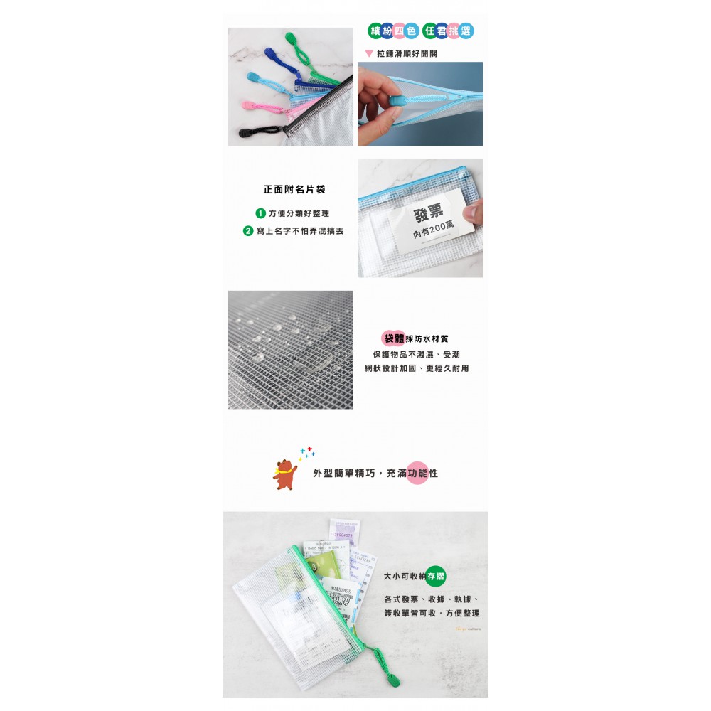 珠友 B6/32K 網狀拉鏈袋(附名片袋) 顏色隨機