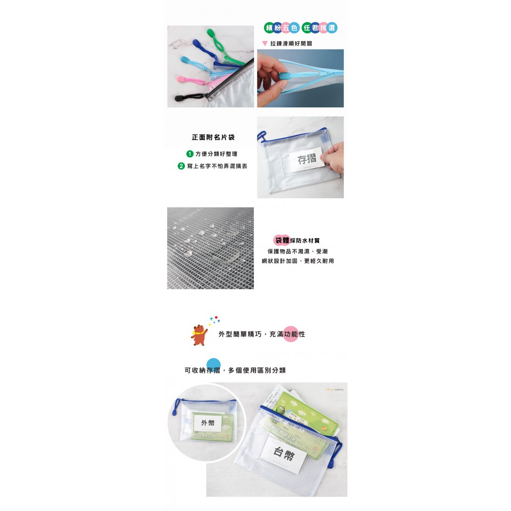 珠友 A6/50K 網狀拉鏈袋(附名片袋) 顏色隨機