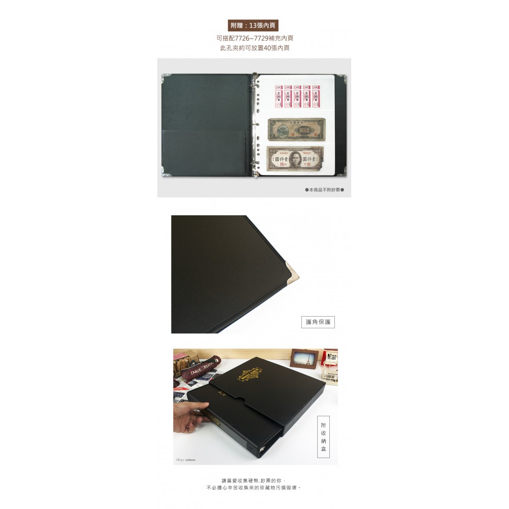 鈔票收藏,內附口袋 內含13張內頁...