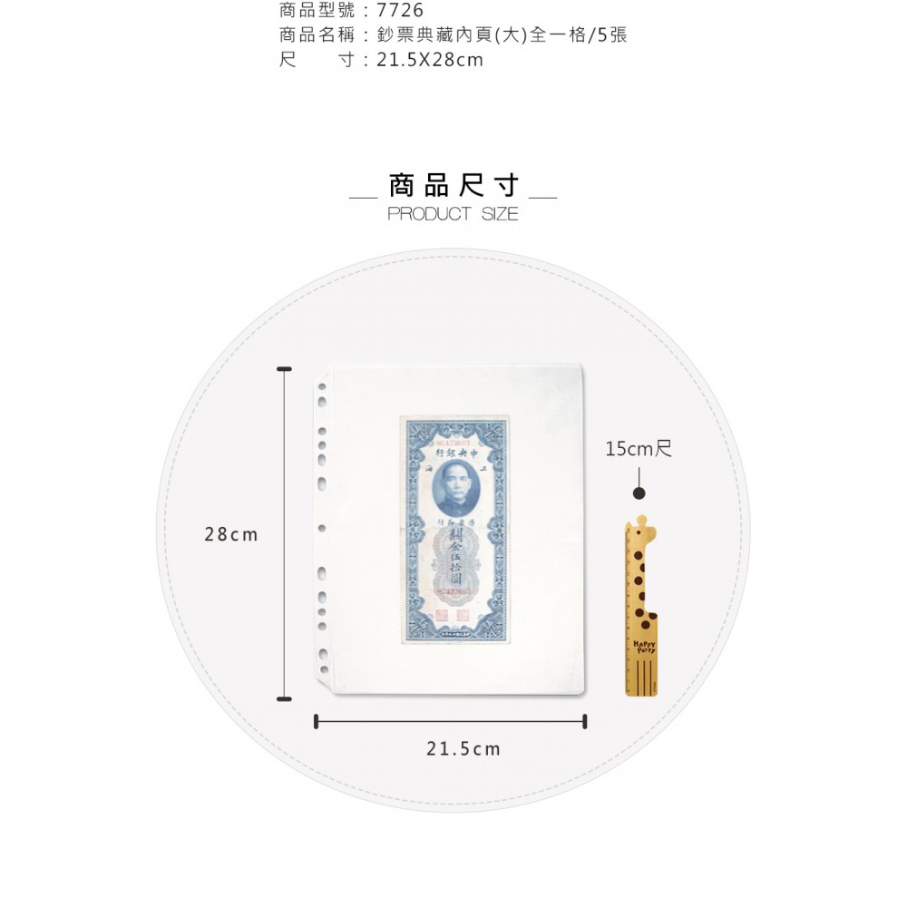 鈔票典藏內頁(全一格) 理想條件下,產品為中性...