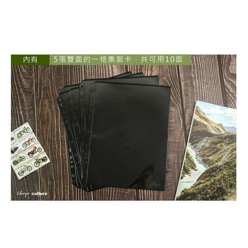 黑底集郵卡(全一格) 5張雙面集郵卡,共可收納10面...