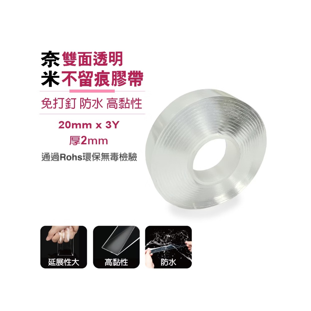 成功 1647A奈米雙面透明不留痕膠帶 20mm