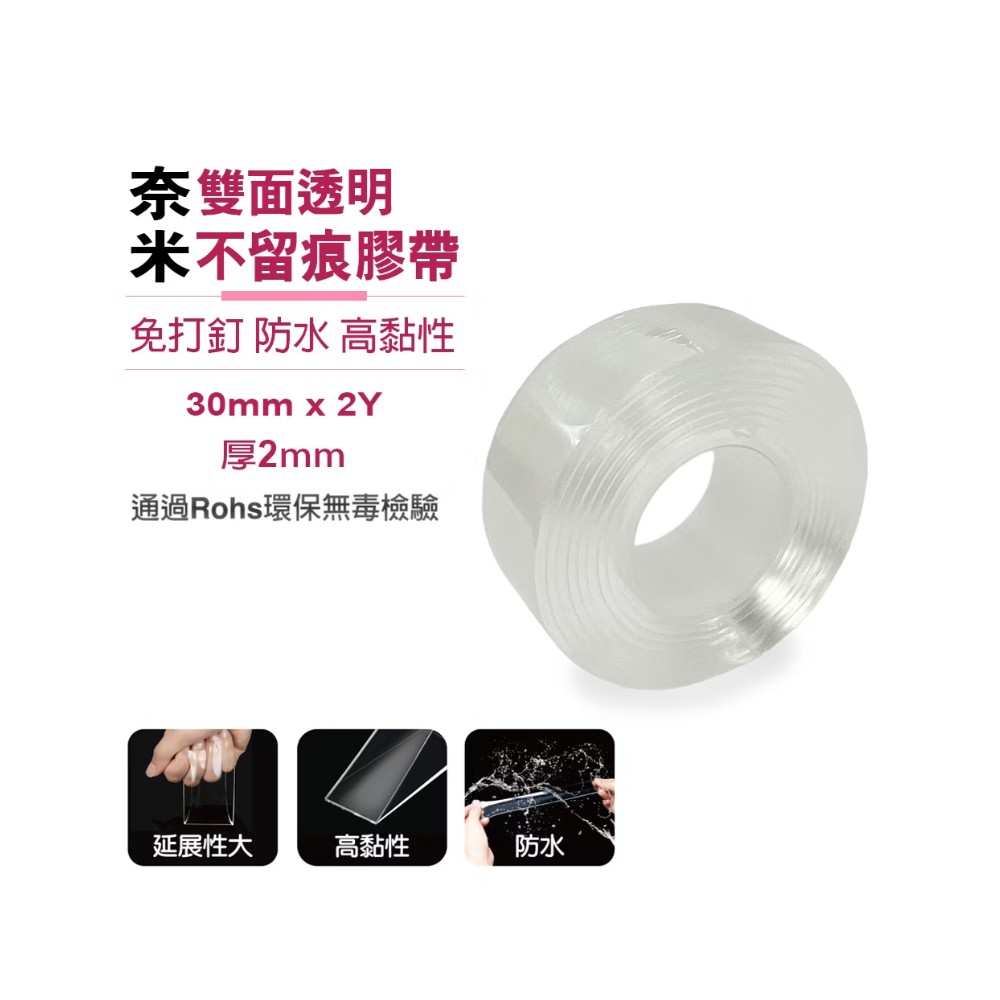 成功 1647B奈米雙面透明不留痕膠帶 30mm