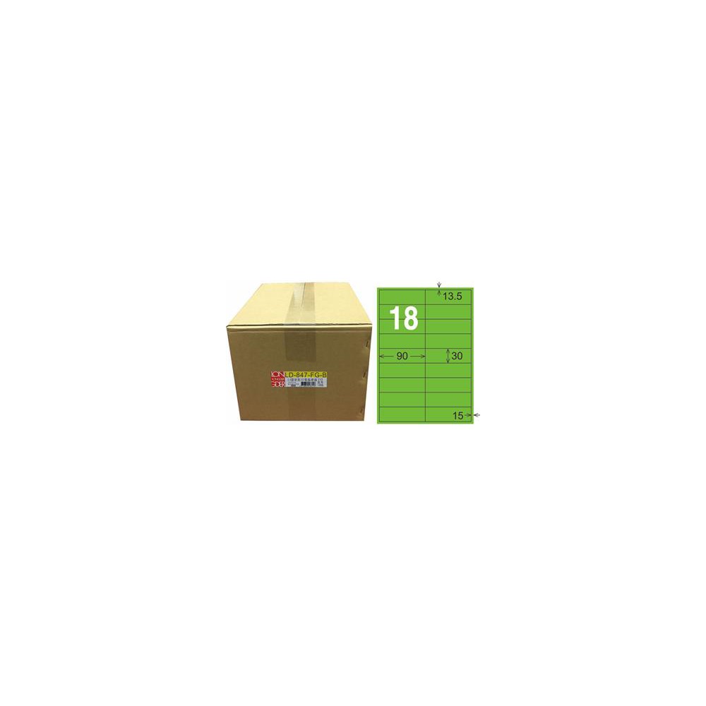 降價! 龍德 LD-847-FG-B A4雷射影印電腦標籤 銅版紙染色 螢光綠色 30x90mm 18格 1000 大張 查看大圖