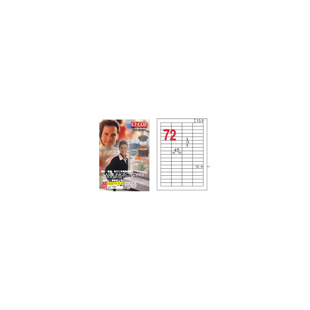 龍德 LD-8112-TL-A A4雷射影印電腦標籤 透明PET材質 透明 15x45mm 72格 80大張
