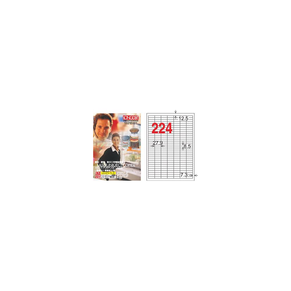 龍德 LD-872-TL-A A4雷射影印電腦標籤 透明PET材質 透明 8.5x27.9mm 224格 80大張