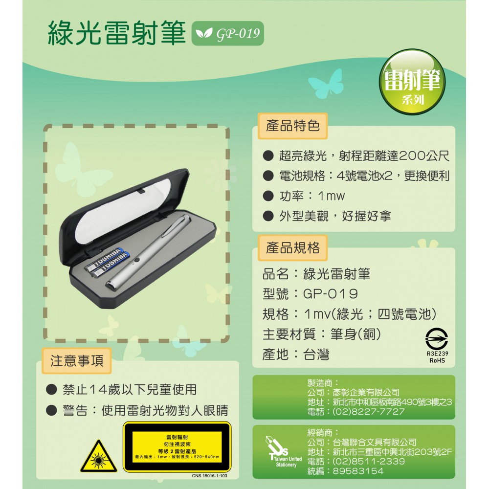 WIP 聯合 綠光雷射筆 GP-019 高瓦數 白天清晰可見