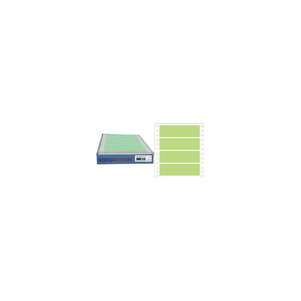 龍德 LD-643-G-A(綠)36X140MM 電腦連續標籤 白模造材質 綠色 36x140mm 4格 600張/盒