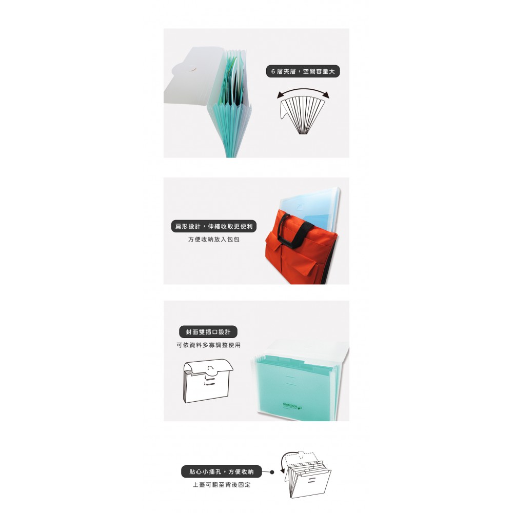 珠友 A4/13K 輕巧扁型風琴夾/6 層