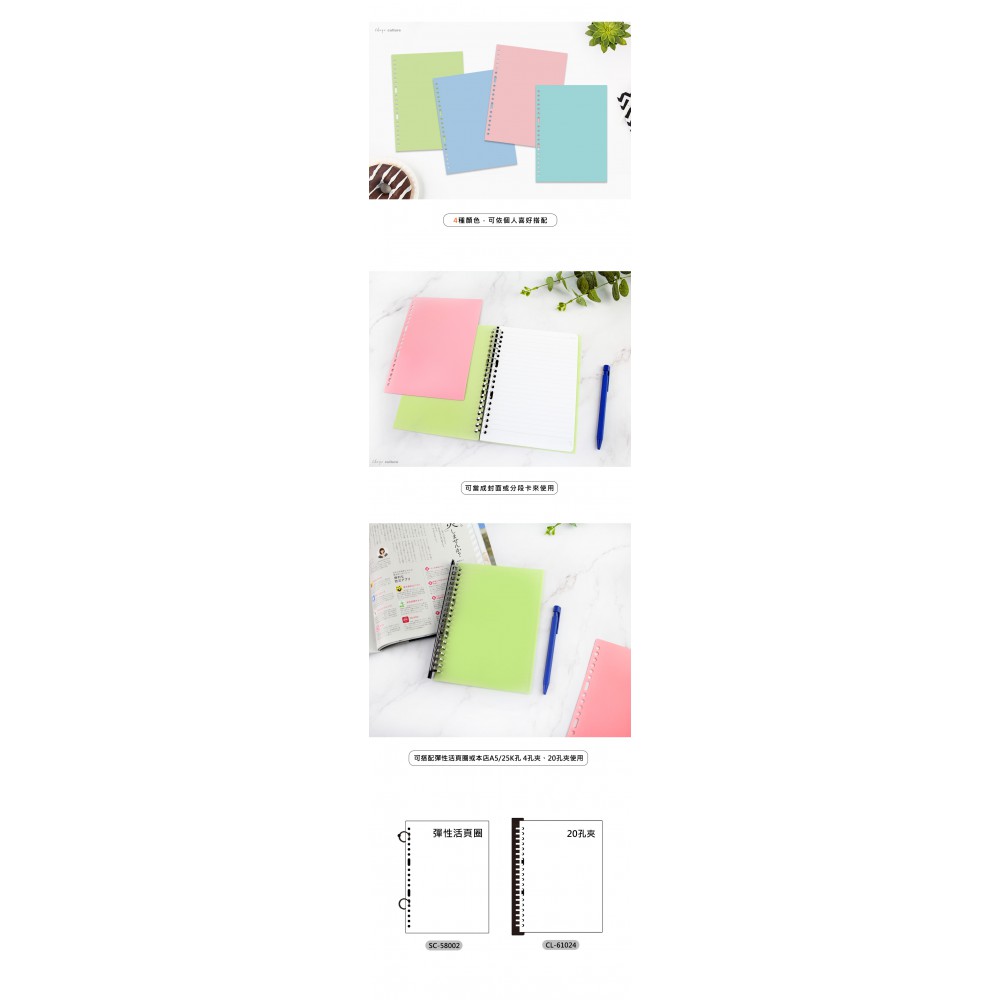 珠友 A5/25K 18 孔粉彩 DIY PP 封面板(可搭配夾具使用)/2 入