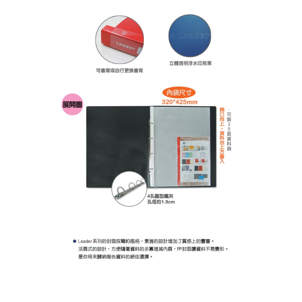 PP封面,不易污損 活頁式設計資料好整理...