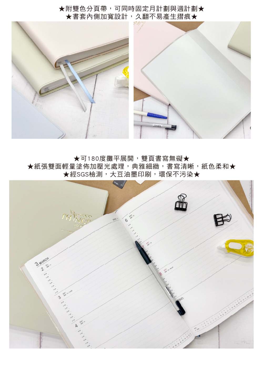 § 可180度攤平展開,雙頁書寫無礙。