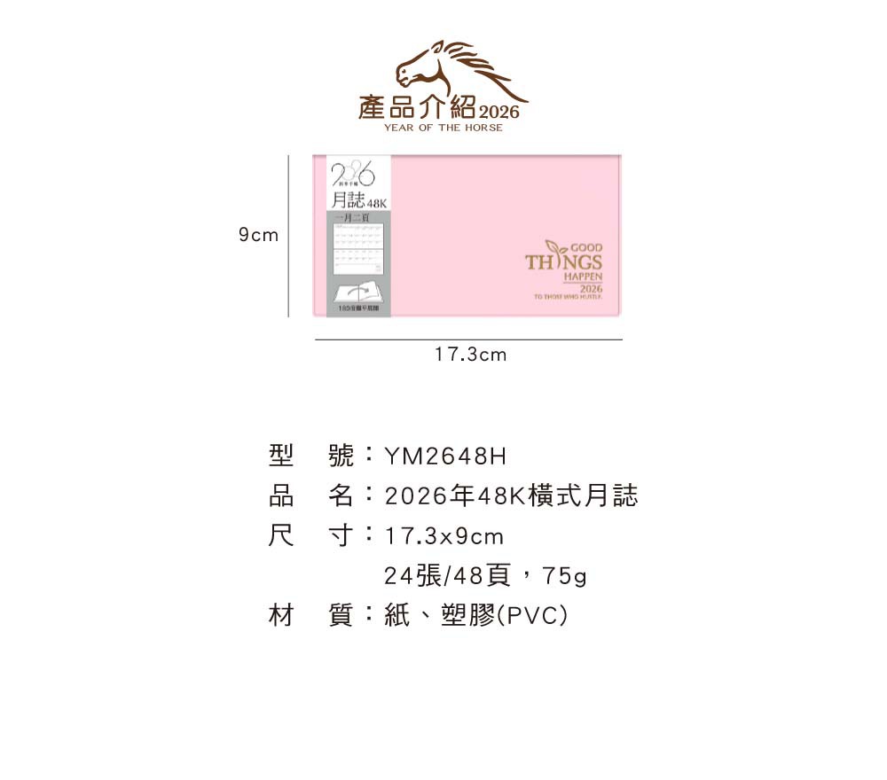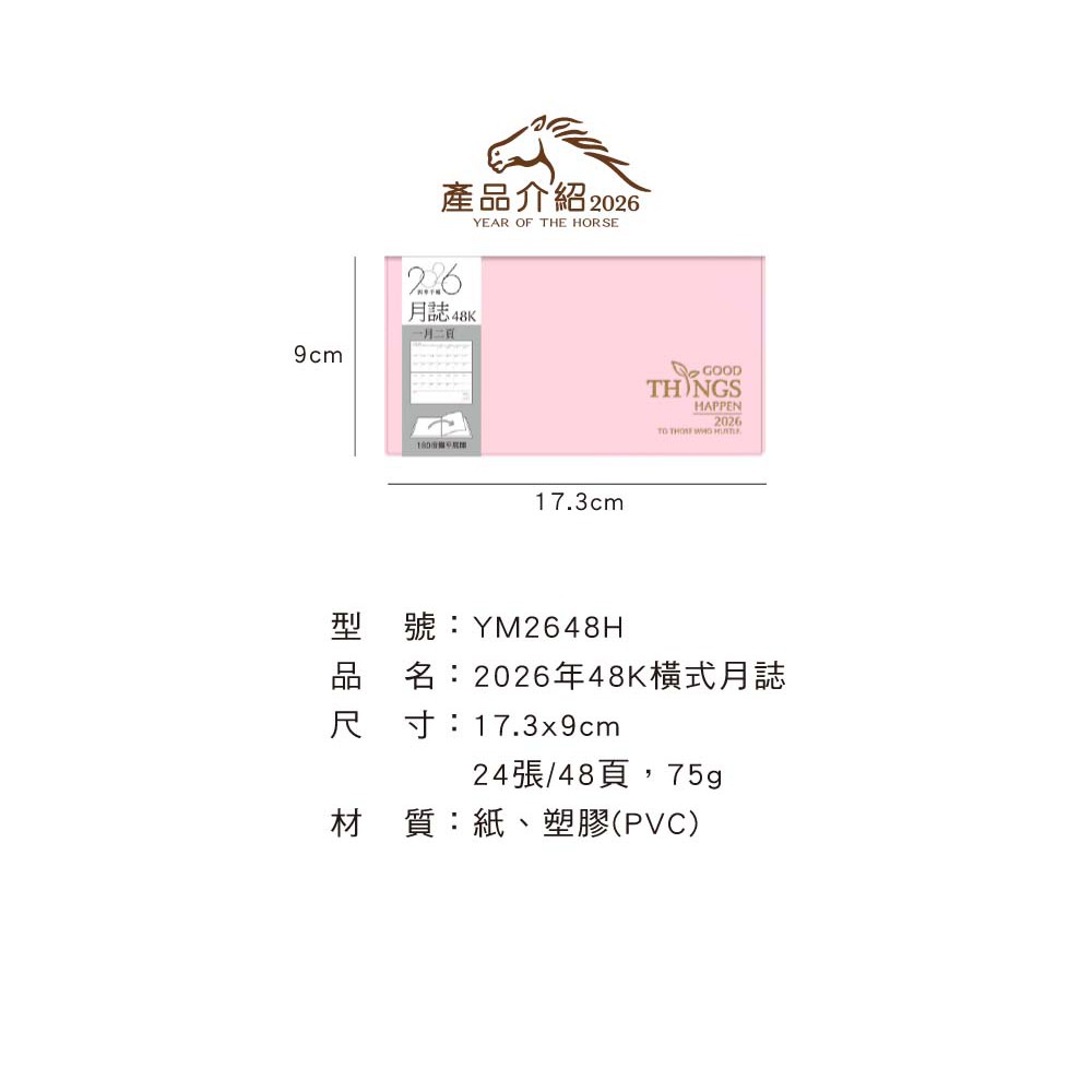 四季紙品禮品 2026年48K橫式月誌 工商日誌 效率手冊 手帳 YM2648H