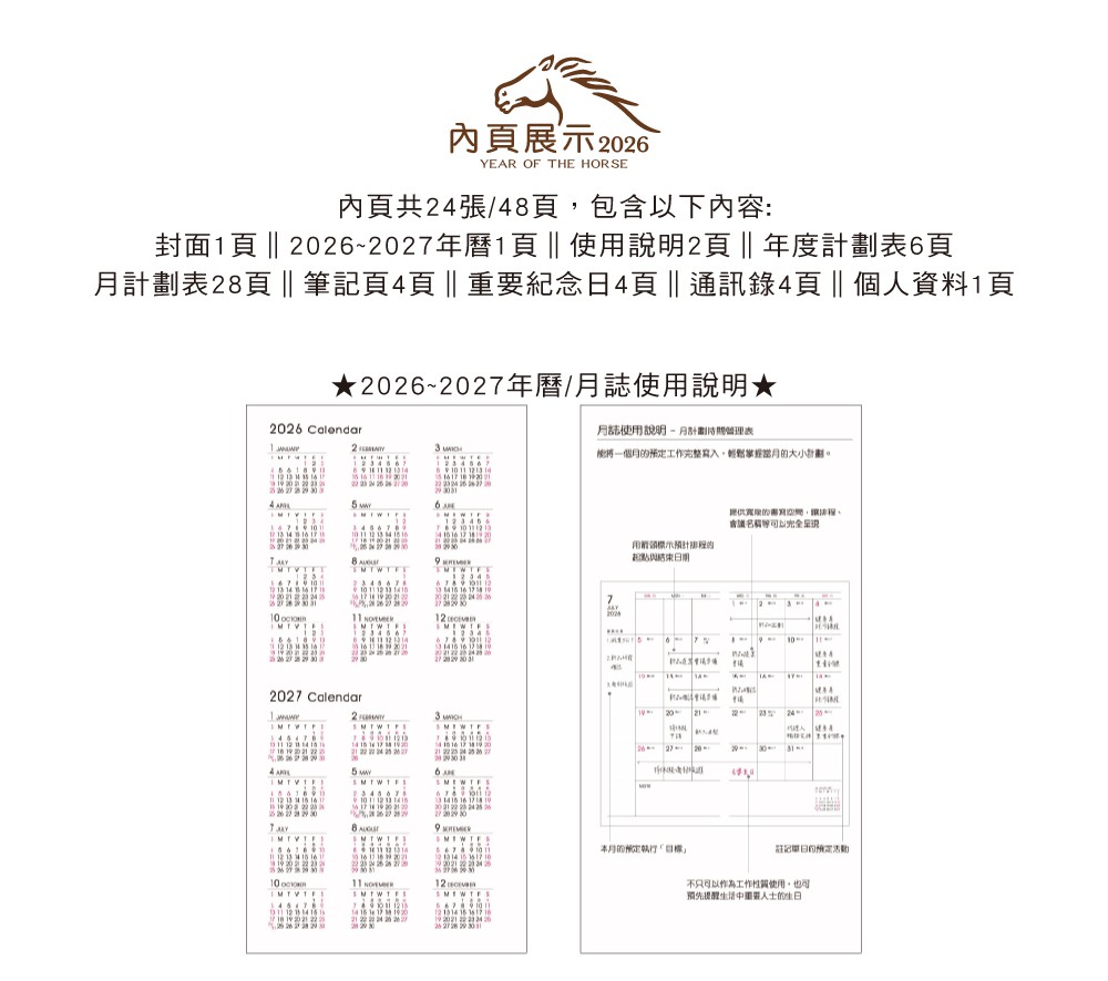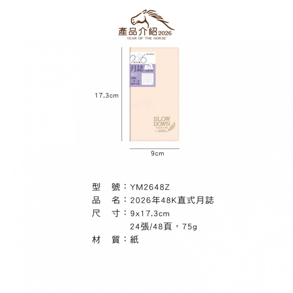 四季紙品禮品 2026年48K直式月誌 工商日誌 效率手冊 手帳 YM2648Z