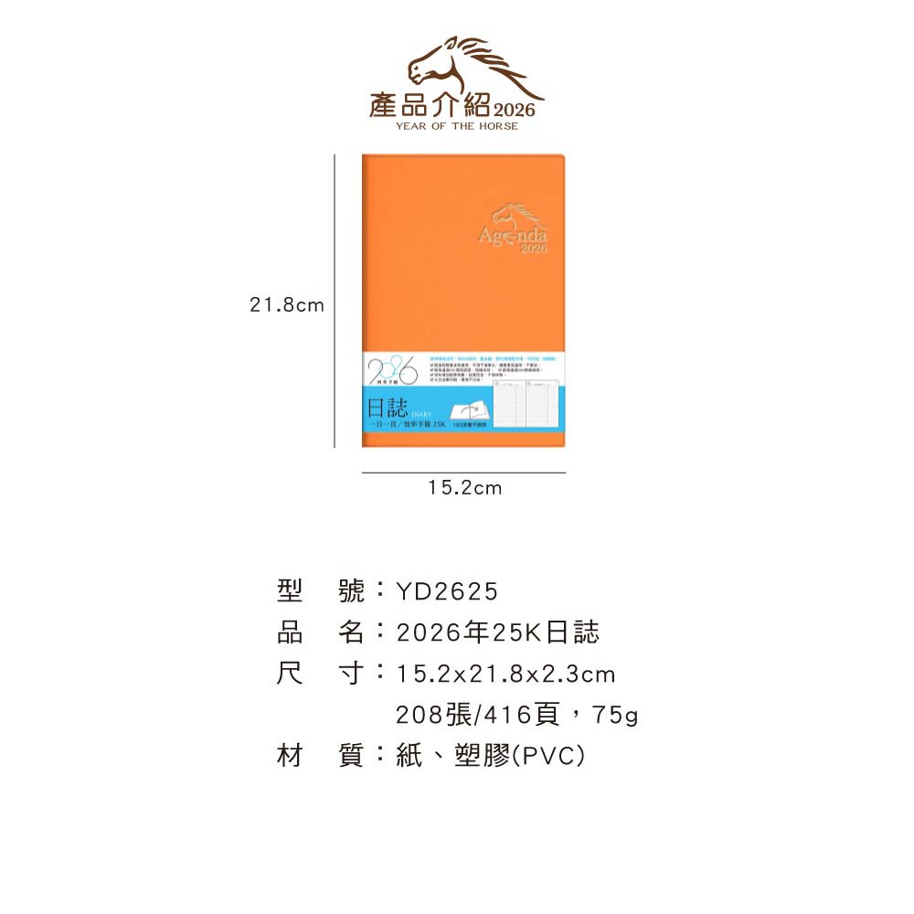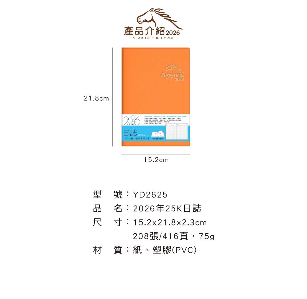 四季紙品禮品 2026年25K日誌 一天一頁 工商日誌 效率手冊 手帳 YD2625
