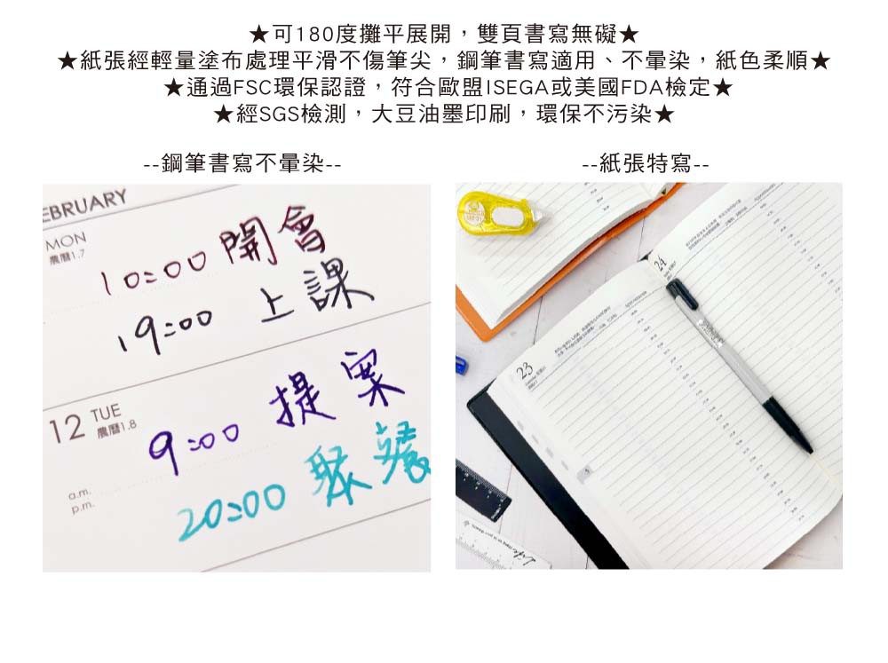 • § 紙張經輕量塗佈處理,鋼筆書寫適用,不暈染,紙色柔順。