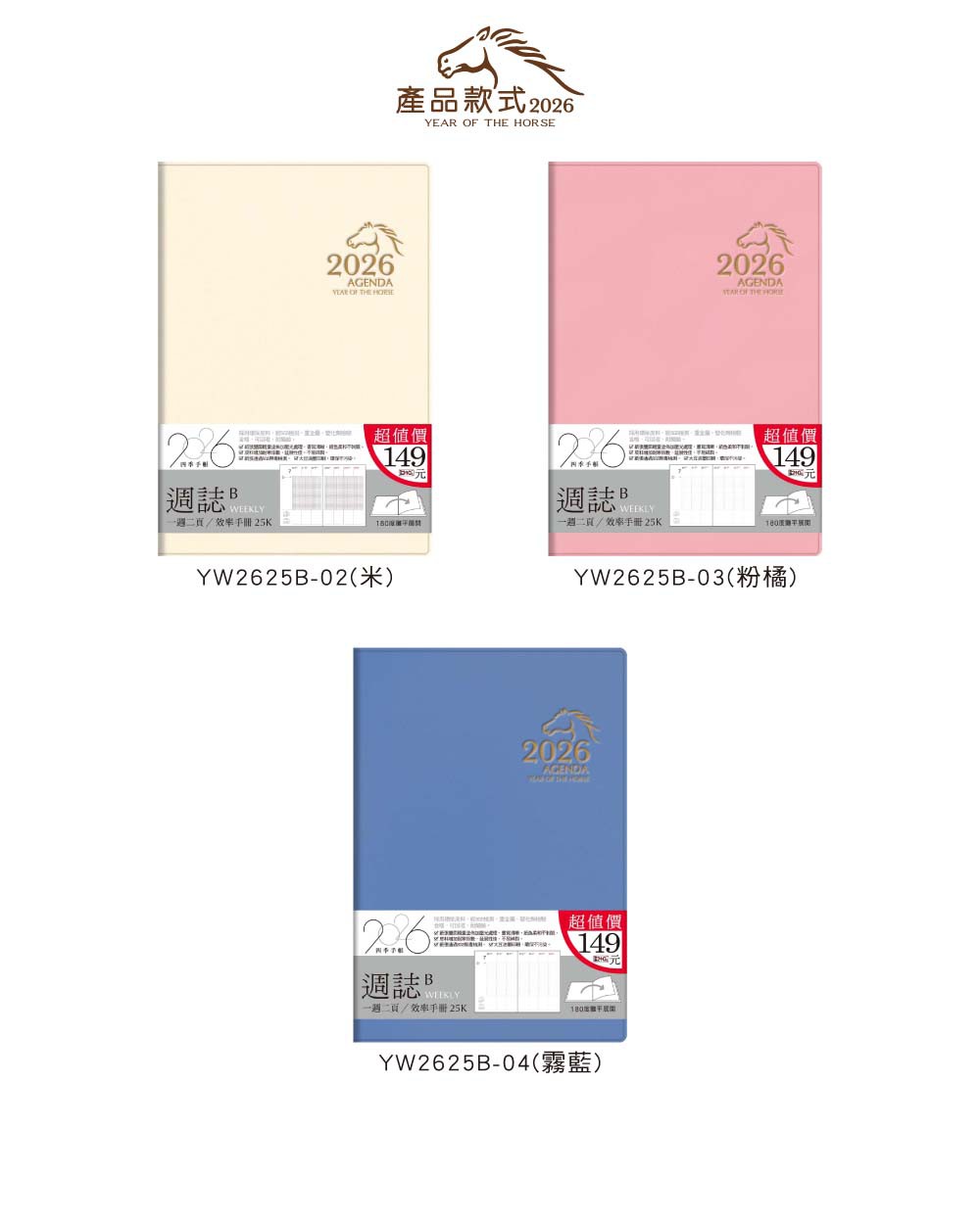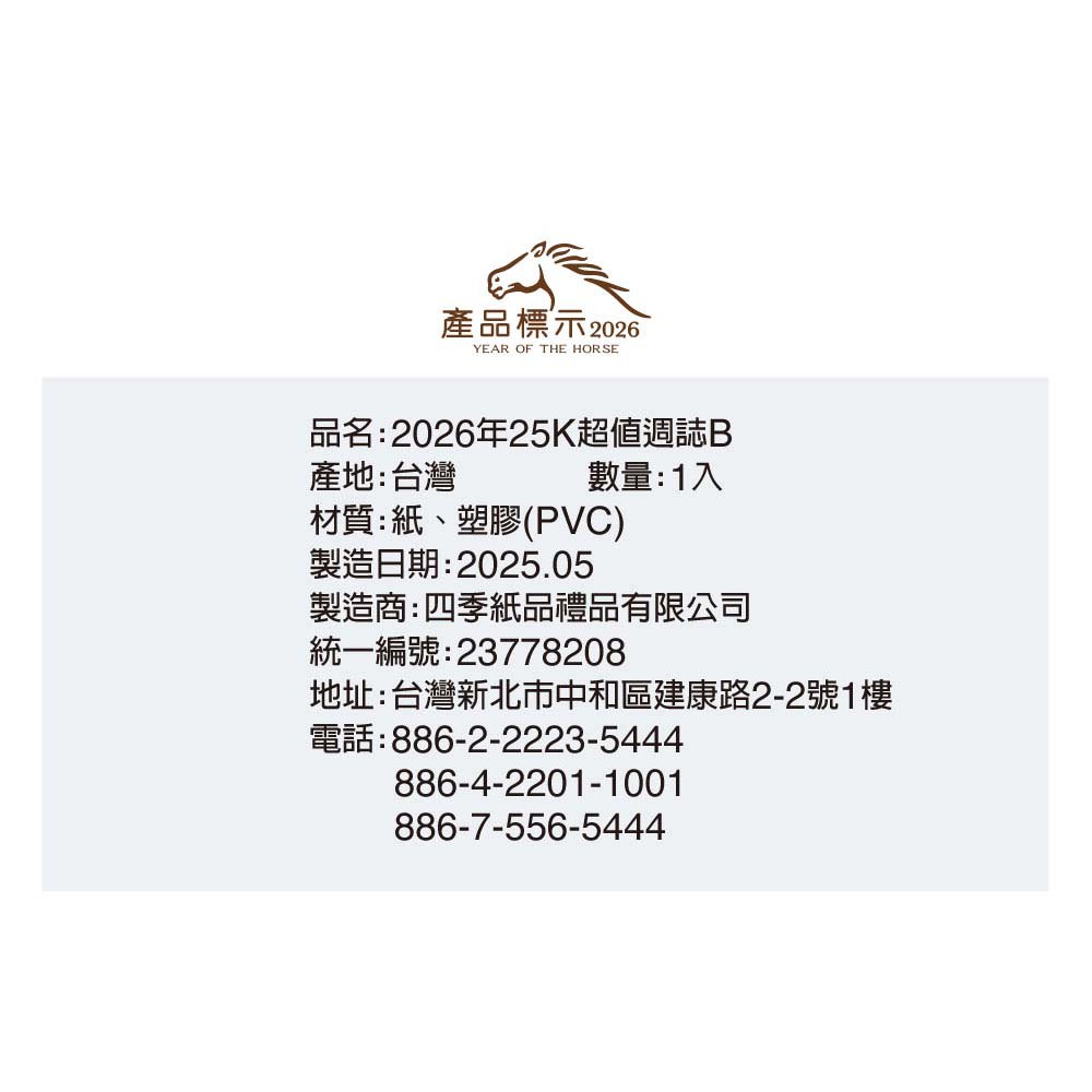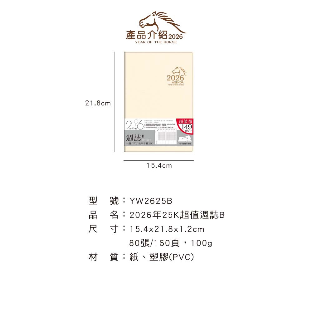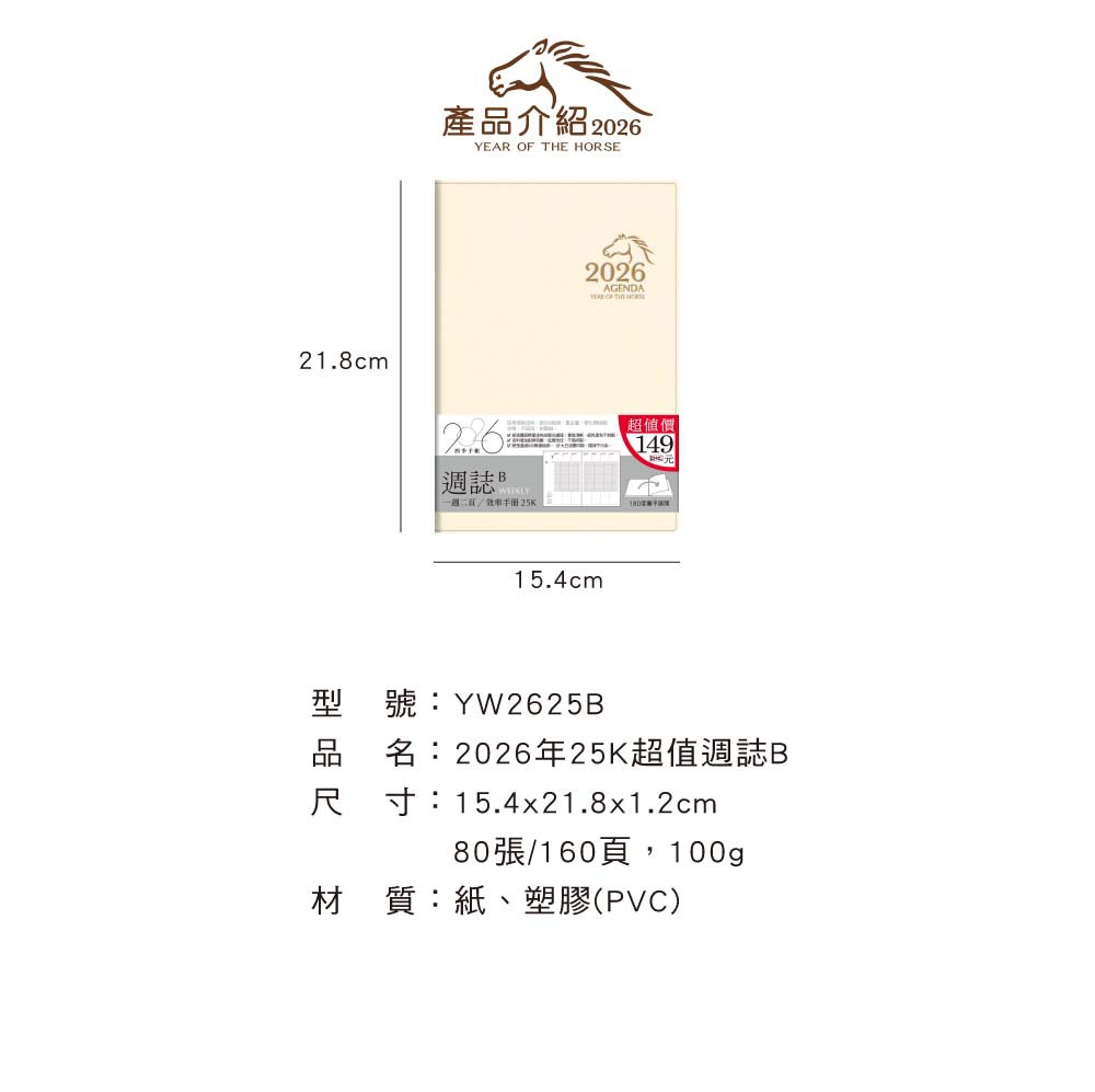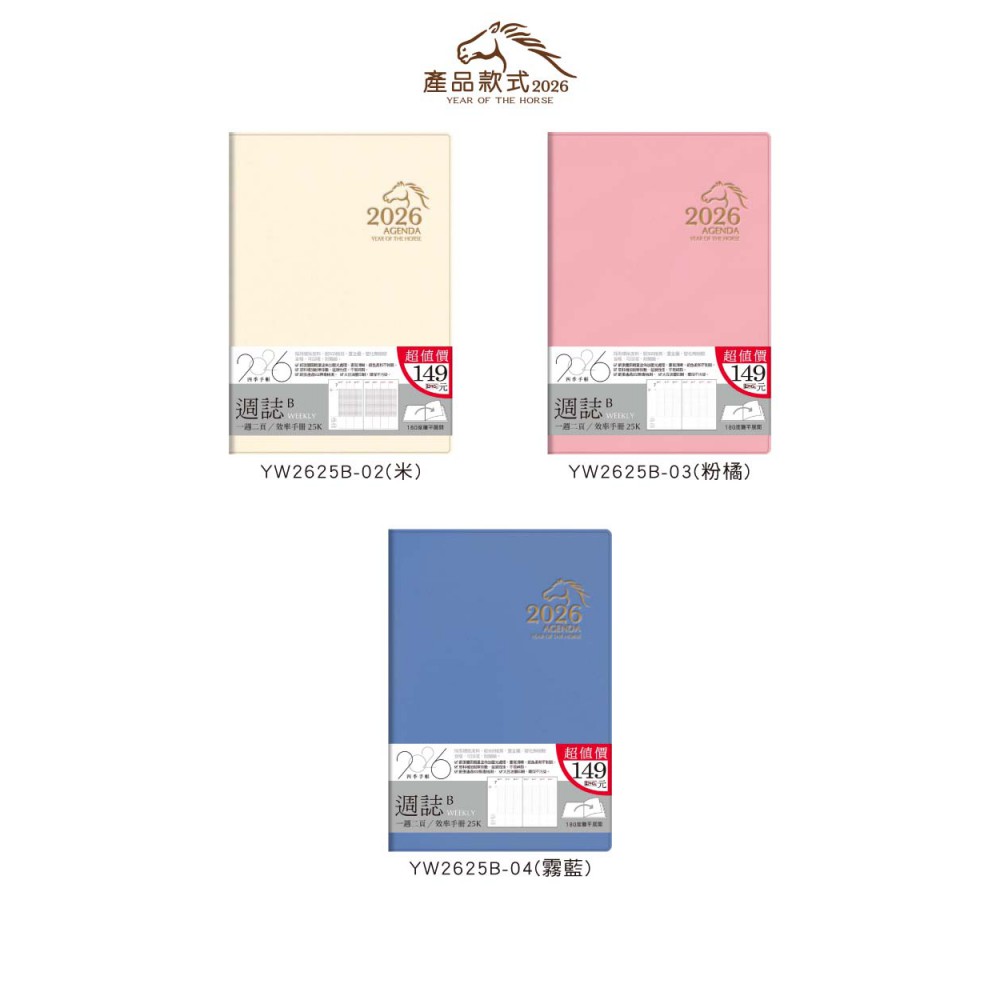 四季紙品禮品 2026年25K超值週誌B 一週二頁 工商日誌 效率手冊 手帳 YW2625B
