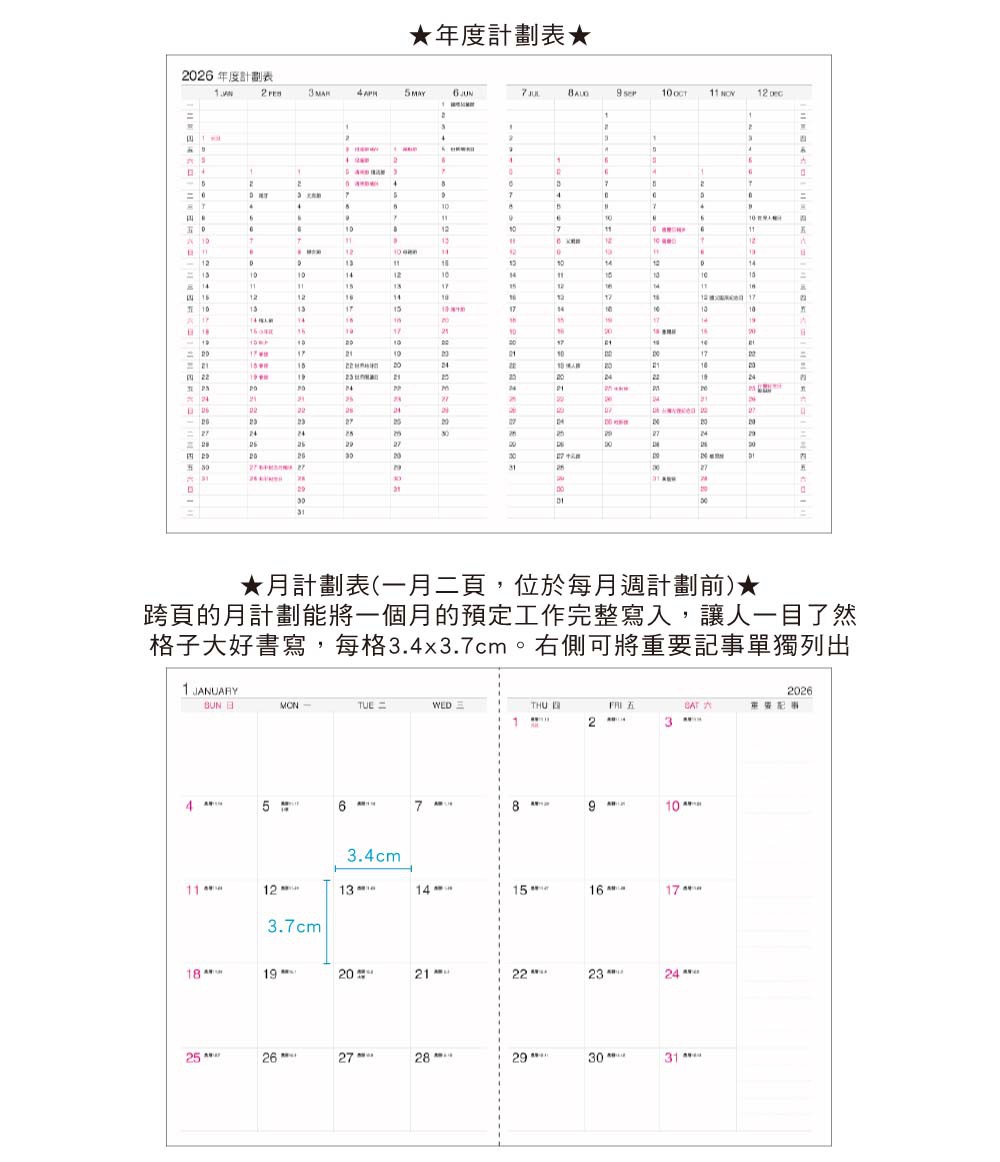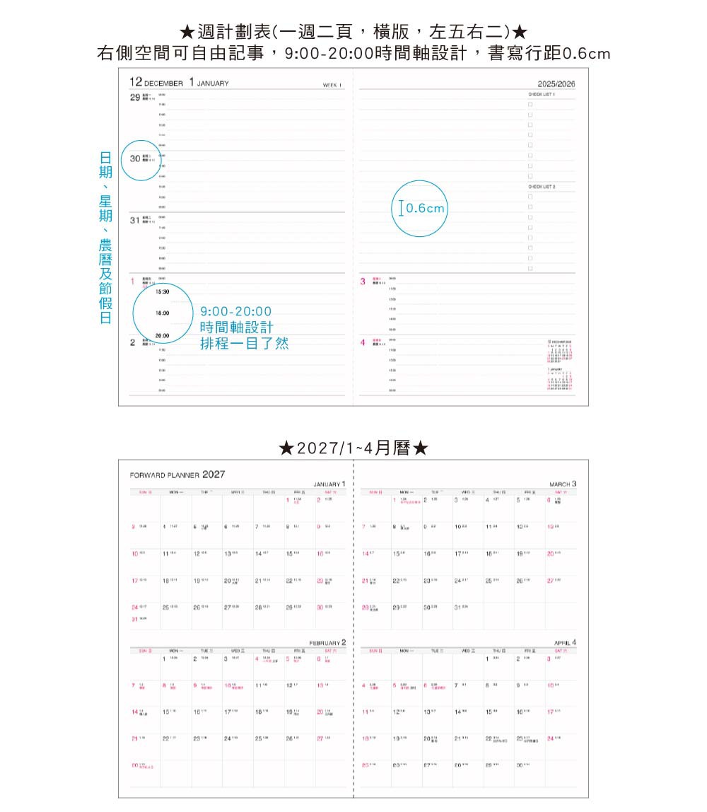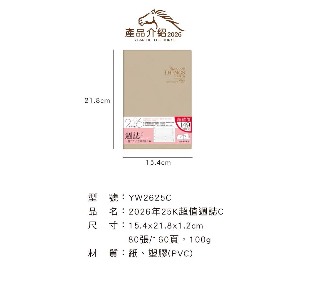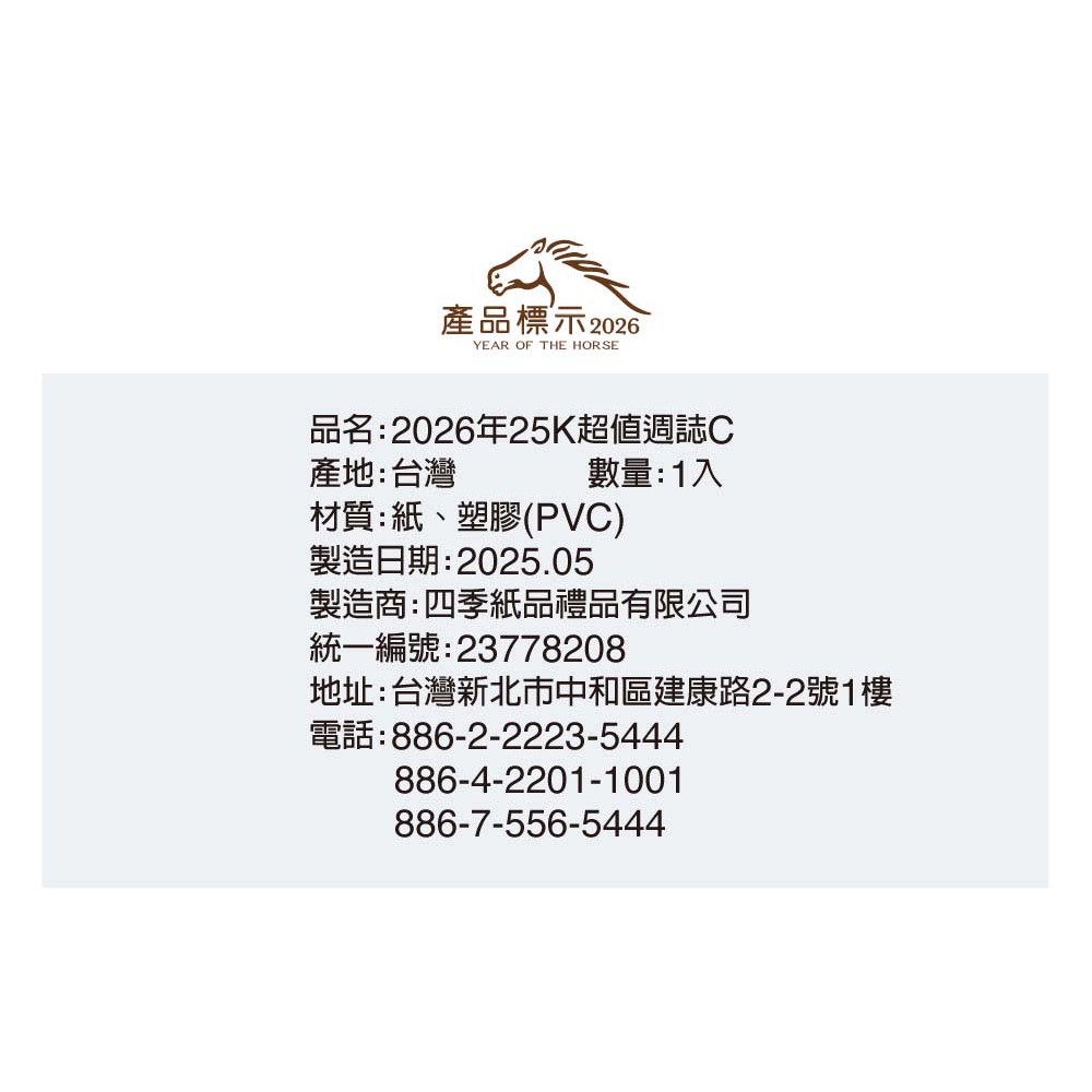 四季紙品禮品 2026年25K超值週誌C 一週二頁 工商日誌 效率手冊 手帳 YW2625C