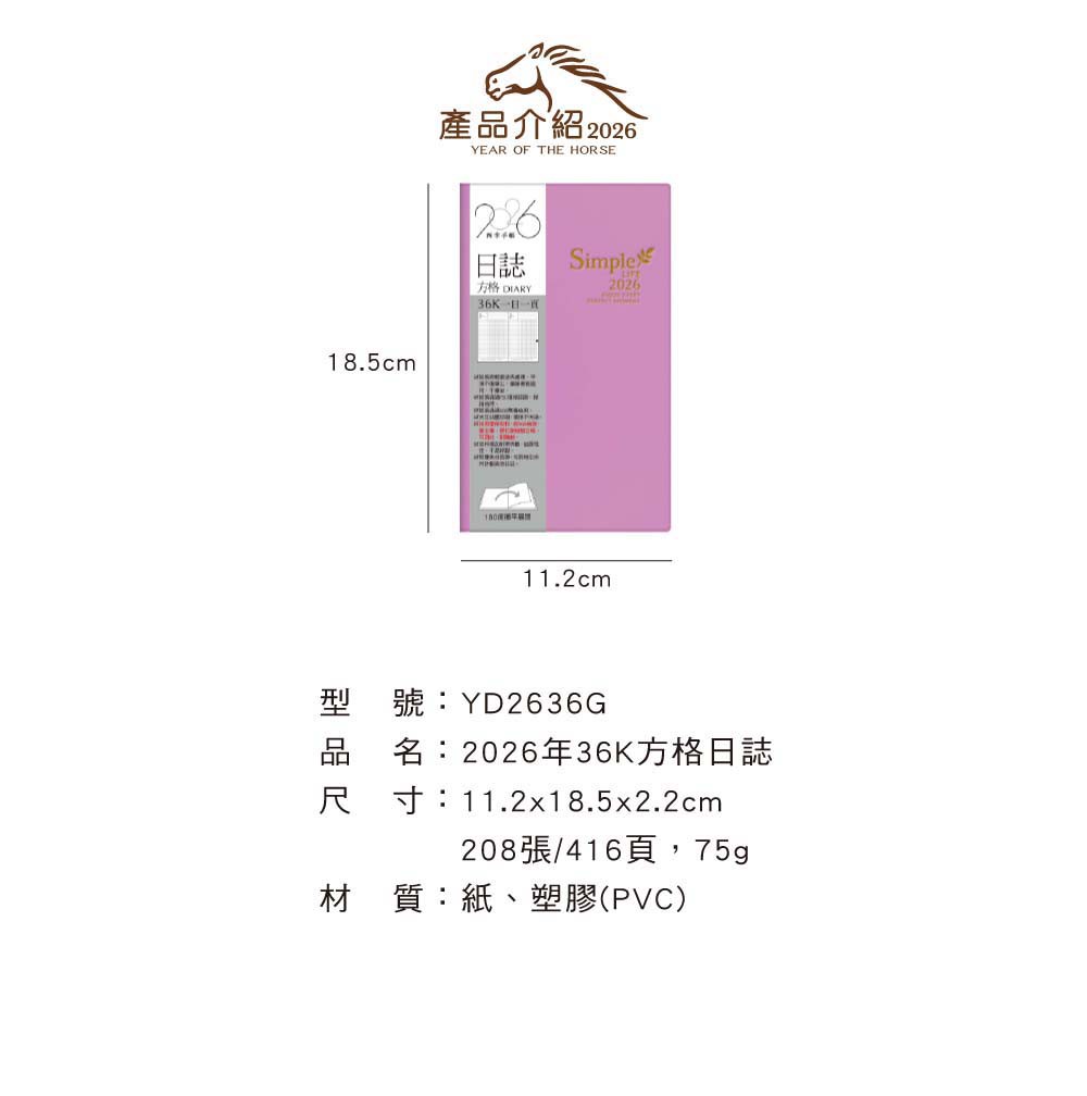 四季紙品禮品 2026年36K方格日誌 一天一頁 工商日誌 效率手冊 手帳 YD2636G