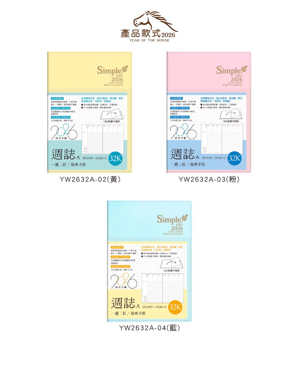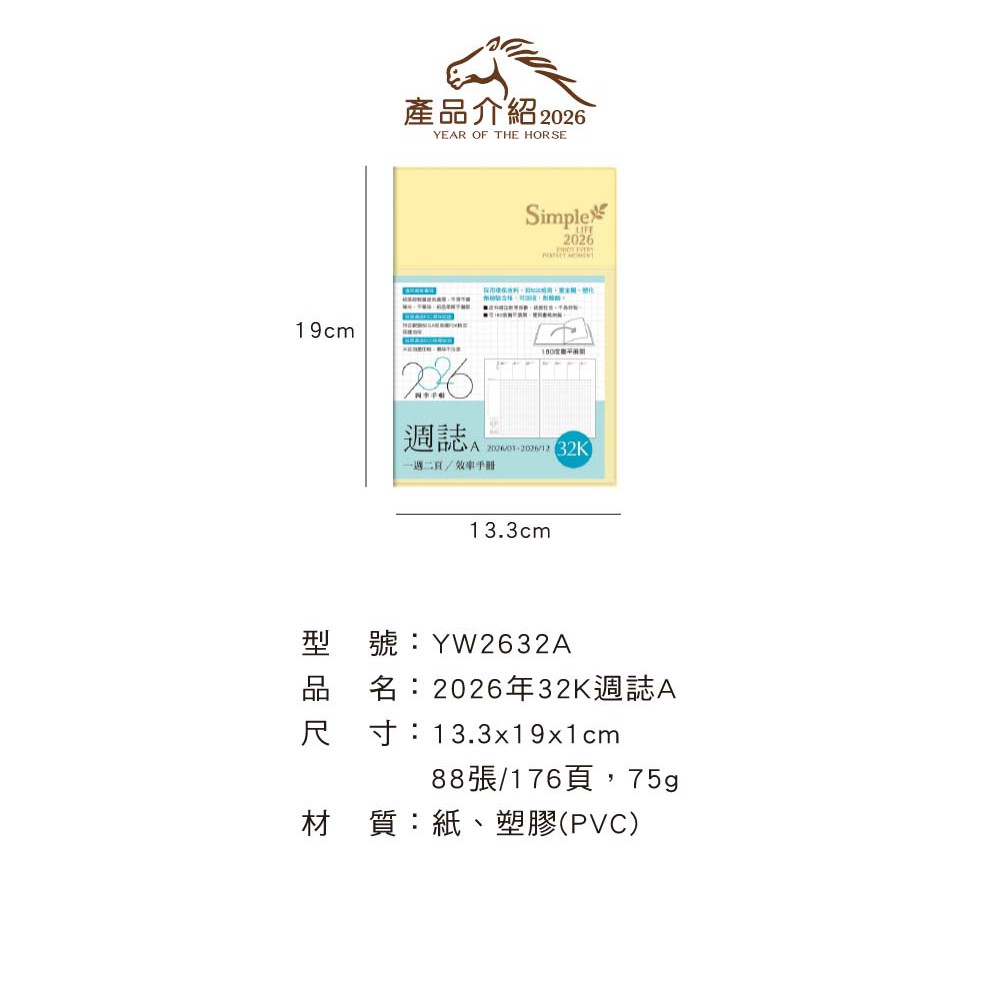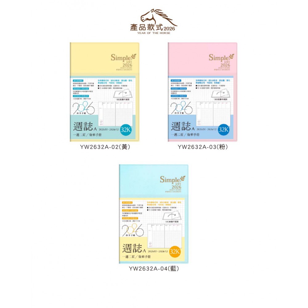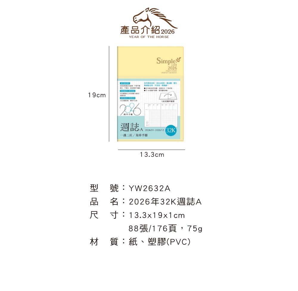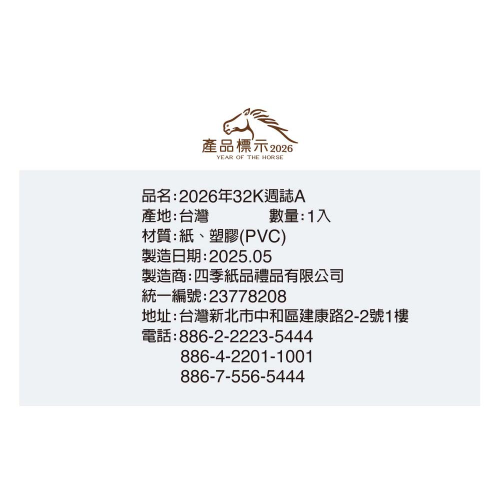 四季紙品禮品 2026年32K週誌A 一週二頁 工商日誌 效率手冊 手帳 YW2632A