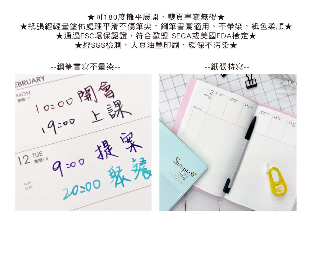 • § 紙張經輕量塗布處理,鋼筆書寫適用,不暈染,紙色柔順。
