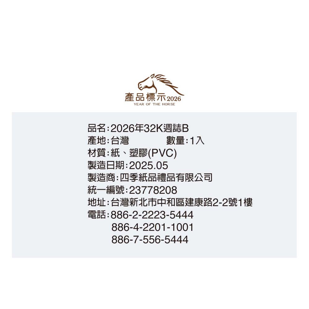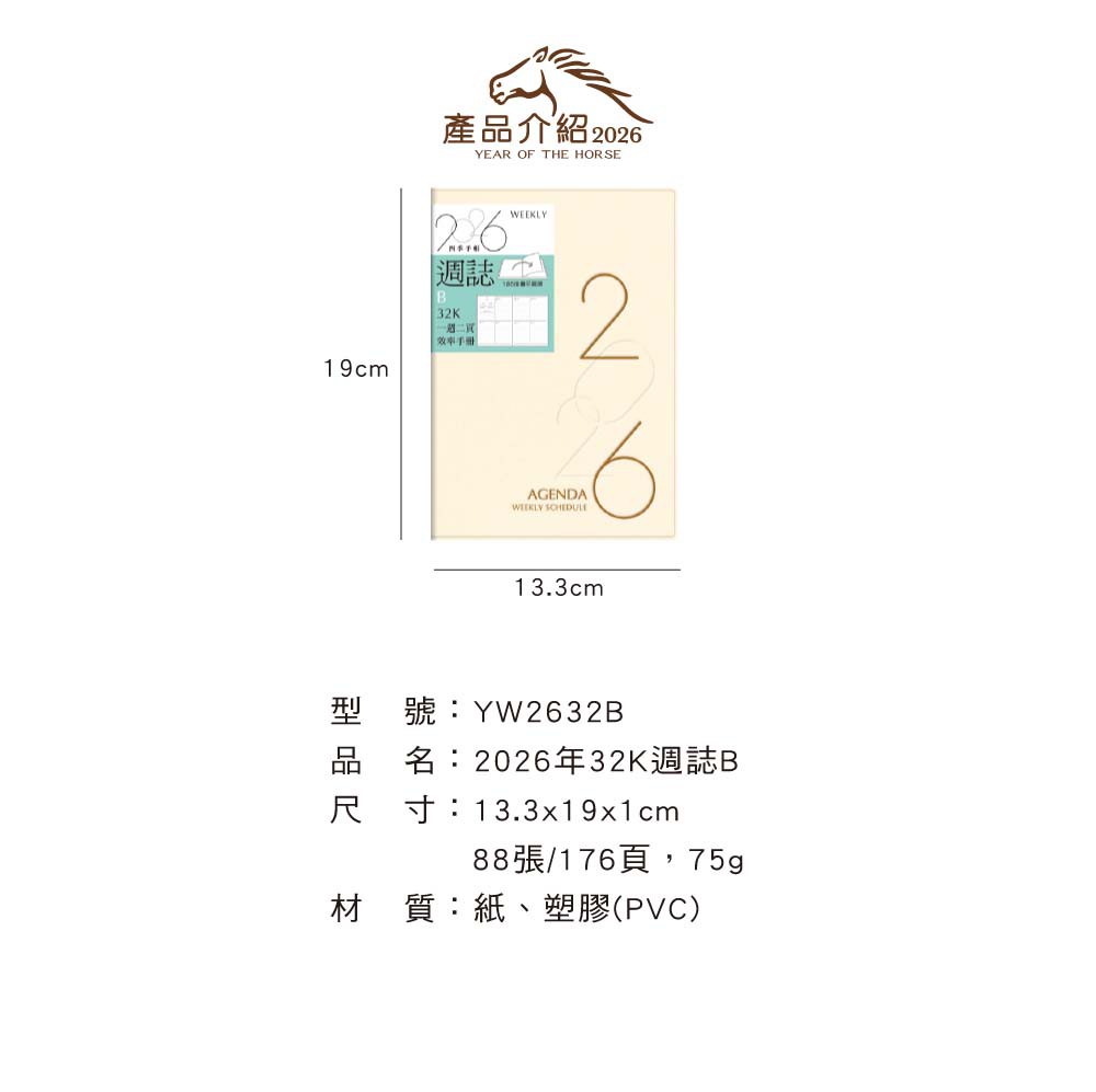 四季紙品禮品 2026年32K週誌B 一週二頁 工商日誌 效率手冊 手帳 YW2632B