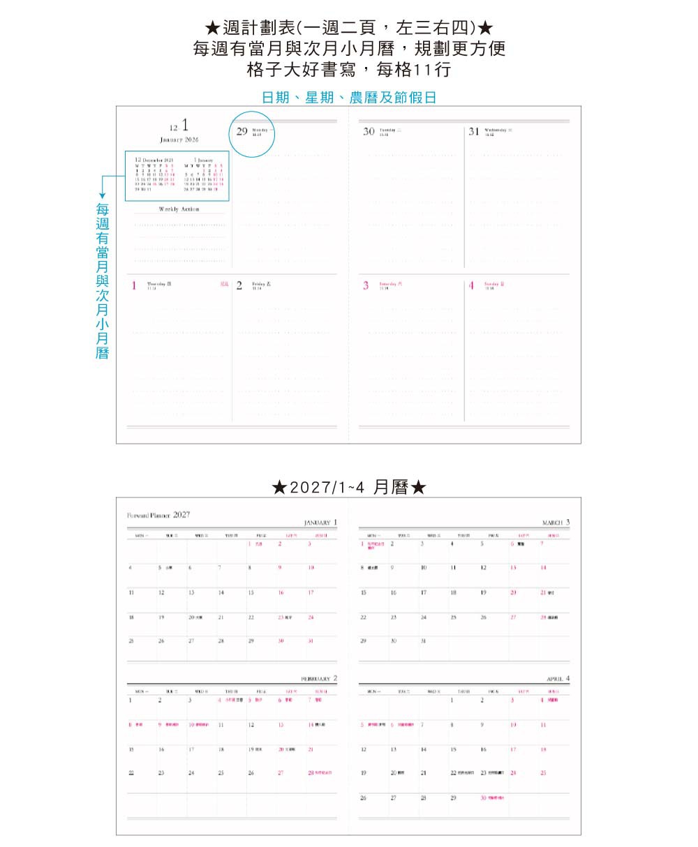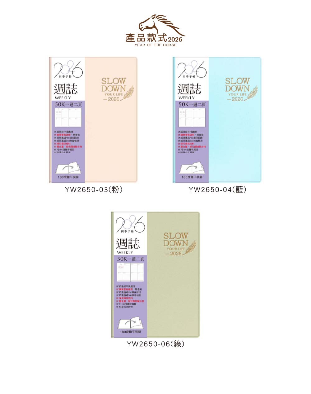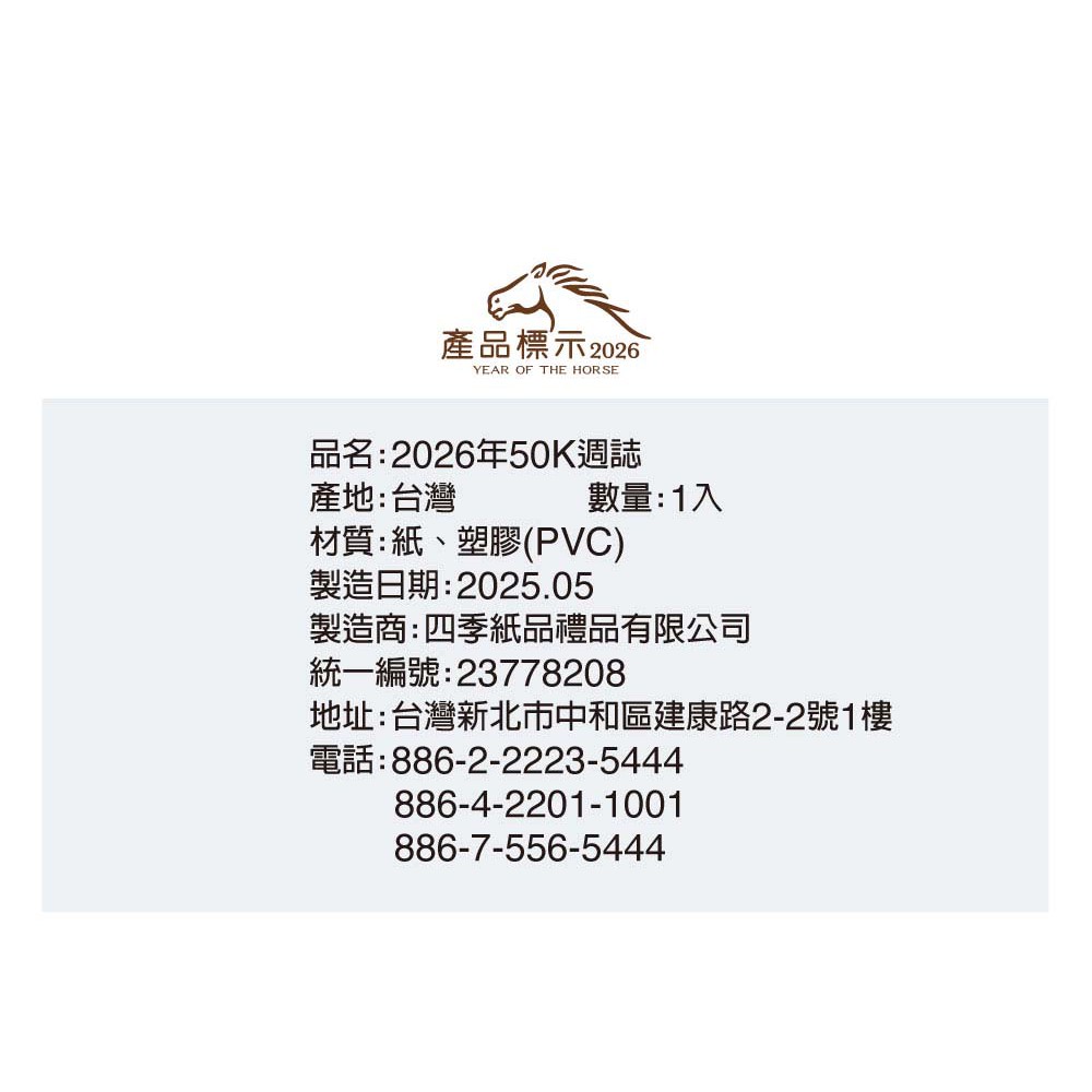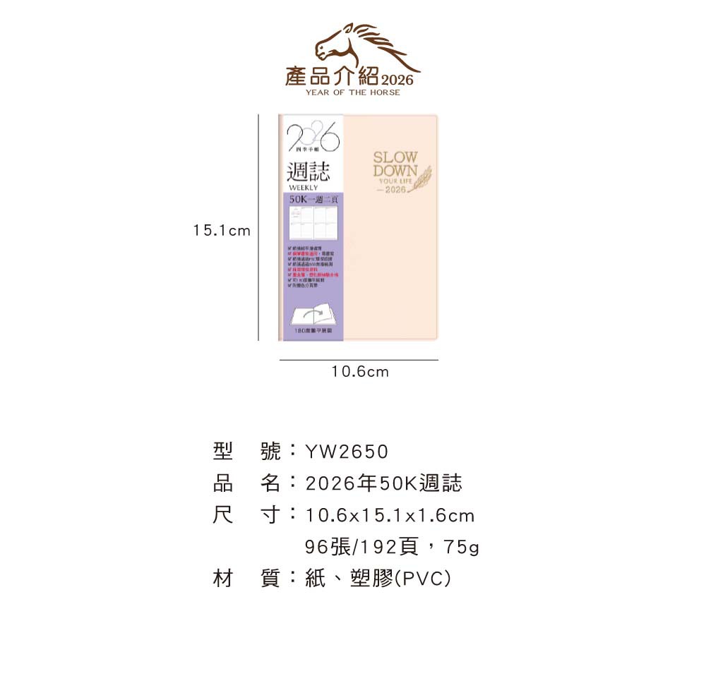四季紙品禮品 2026年50K週誌 一週二頁 工商日誌 效率手冊 手帳 YW2650