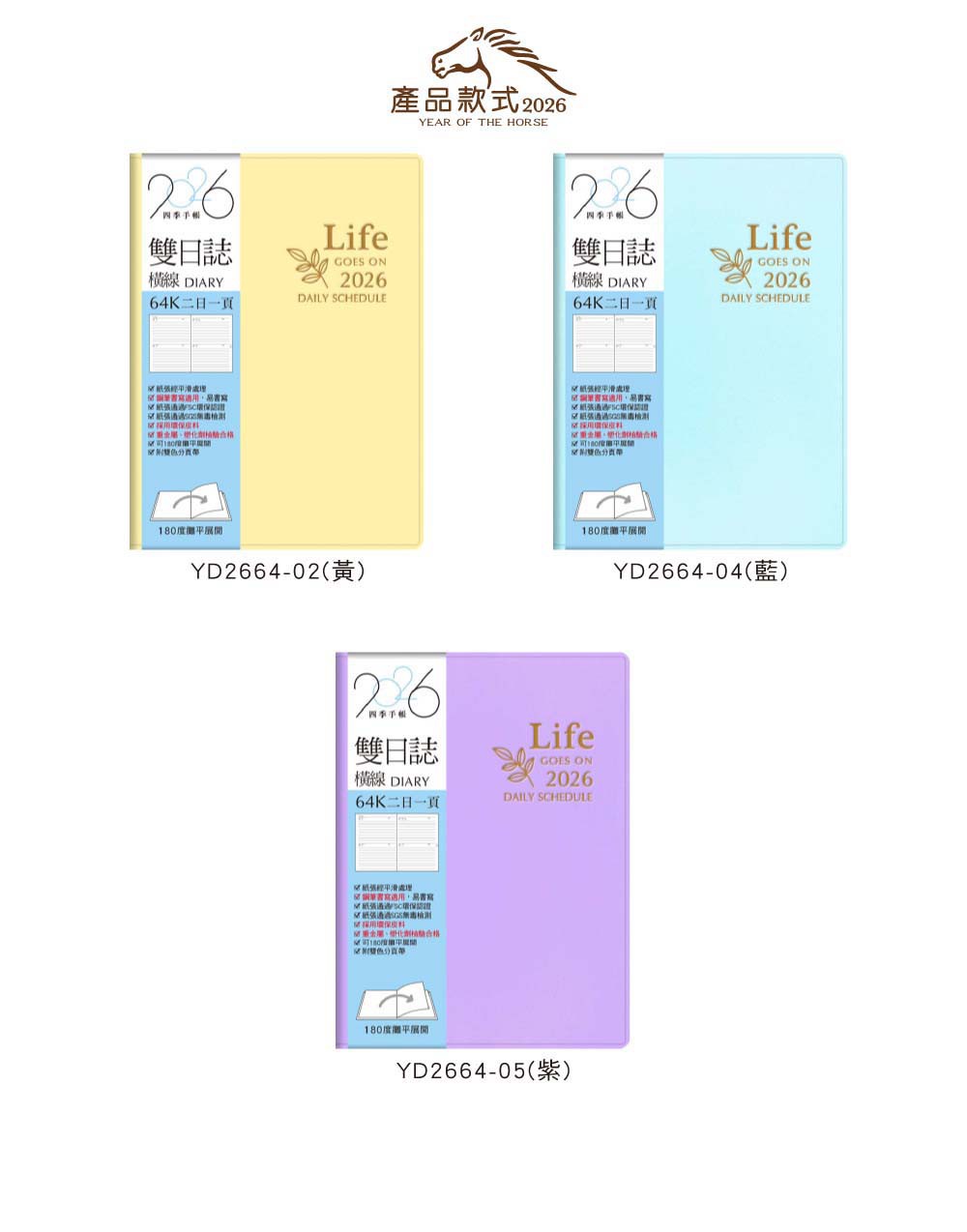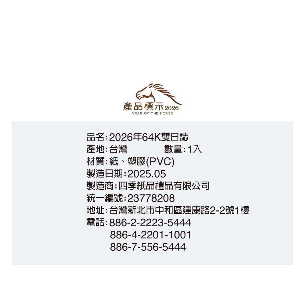 四季紙品禮品 2026年64K雙日誌 兩天一頁 工商日誌 效率手冊 手帳 YD2664