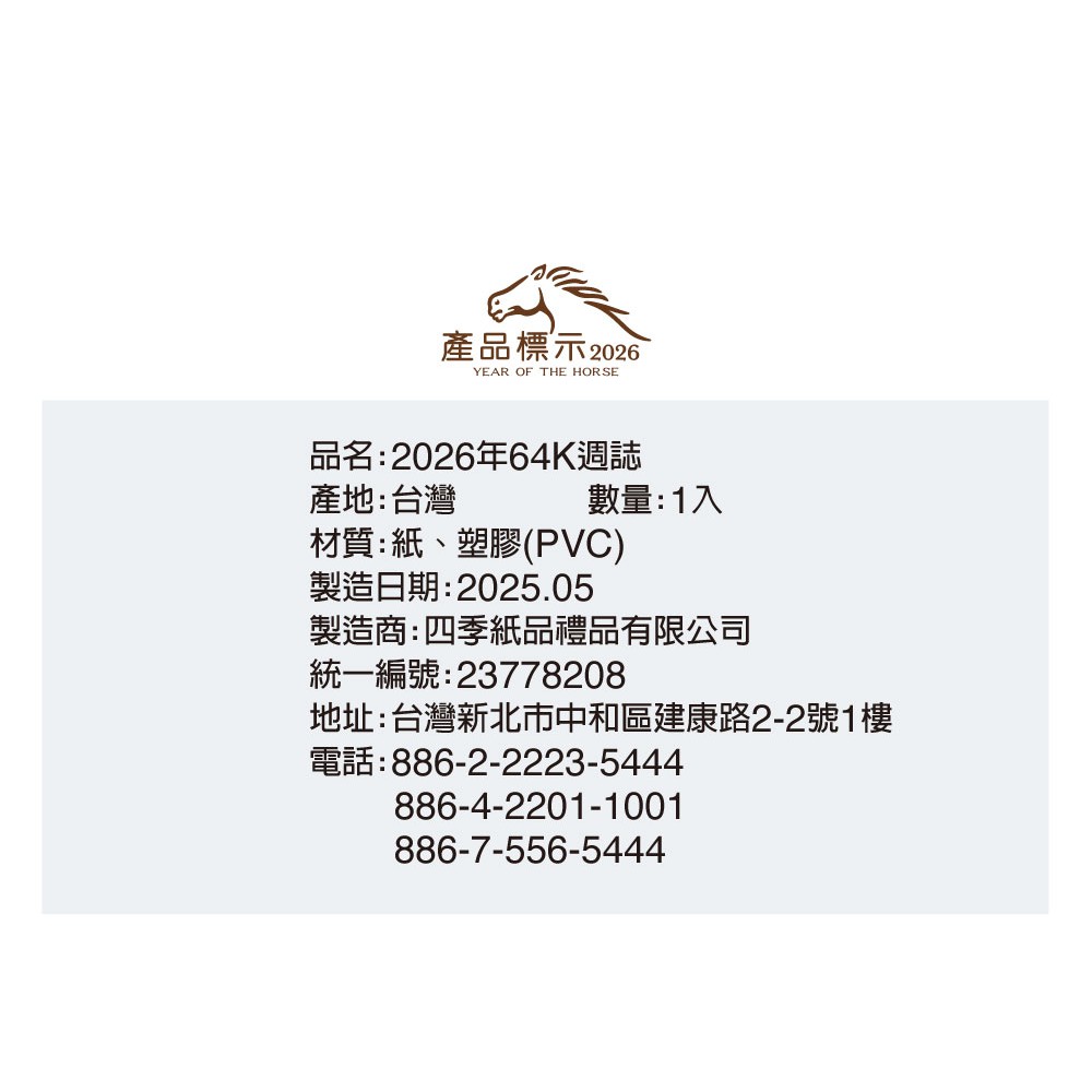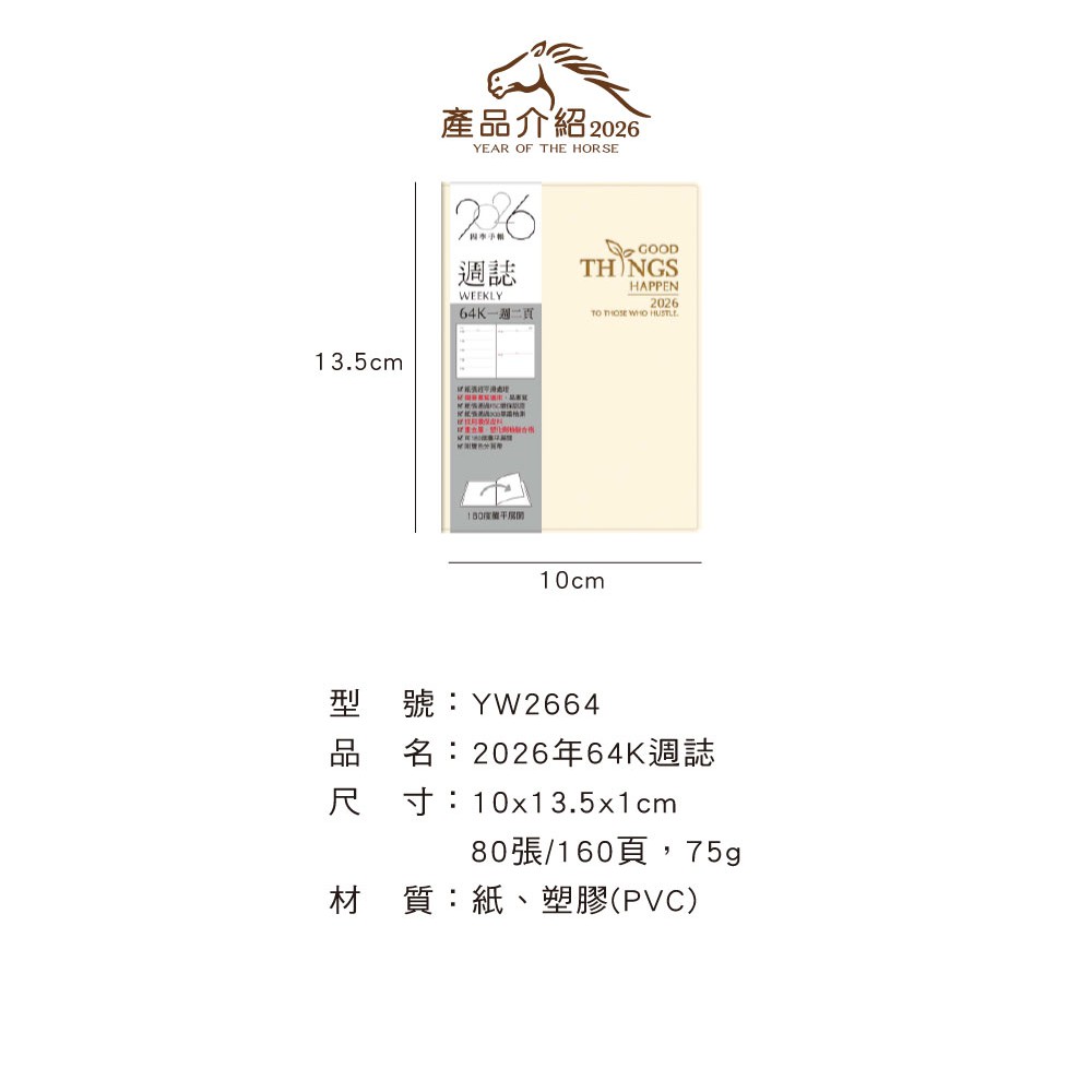 四季紙品禮品 2026年64K週誌 一週二頁 工商日誌 效率手冊 手帳 YW2664