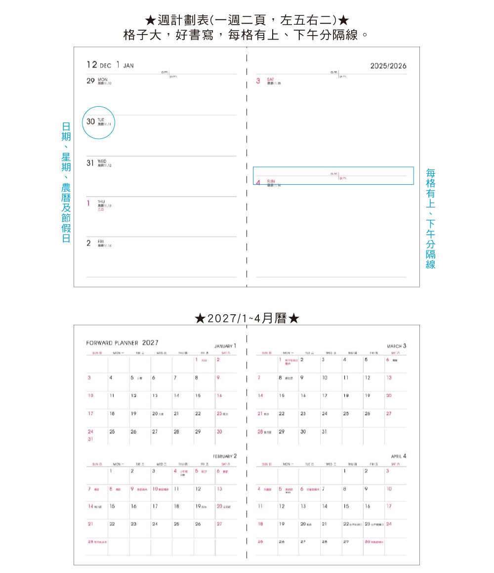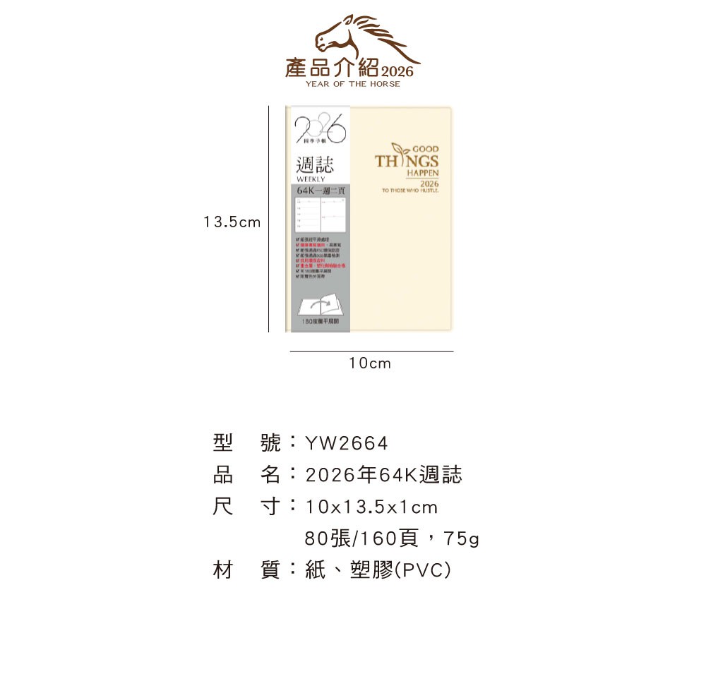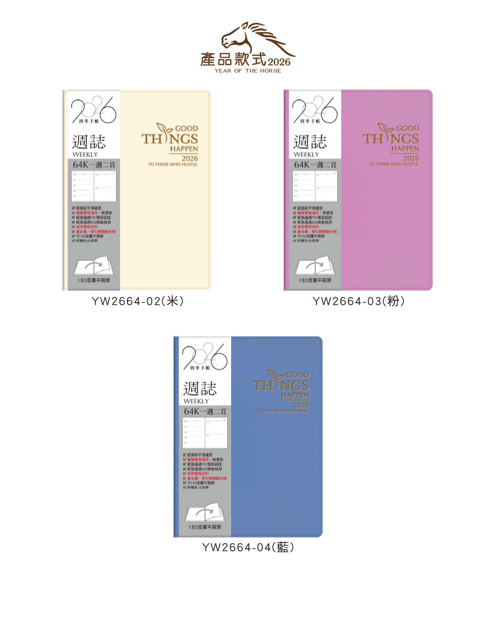 四季紙品禮品 2026年64K週誌 一週二頁 工商日誌 效率手冊 手帳 YW2664