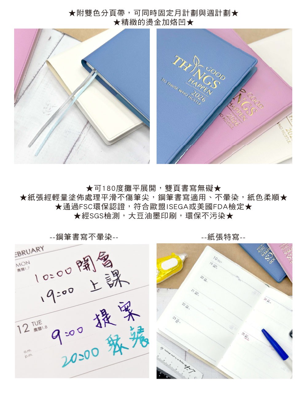 • § 紙張經輕量塗佈處理,鋼筆書寫適用,不暈染,紙色柔順。