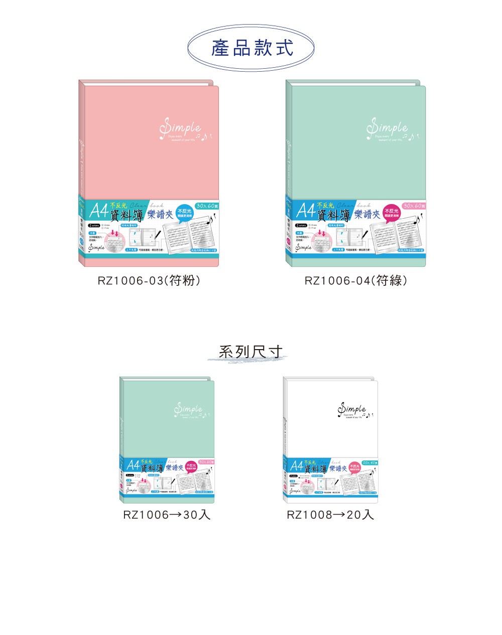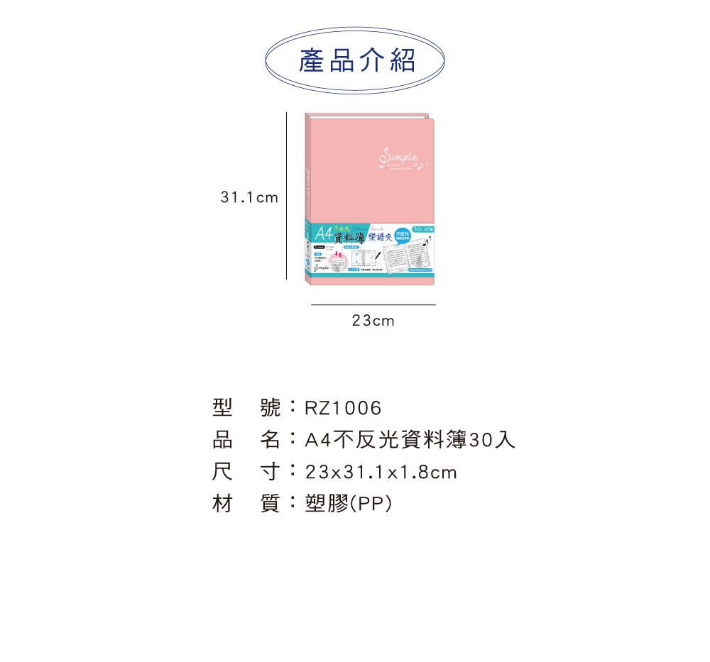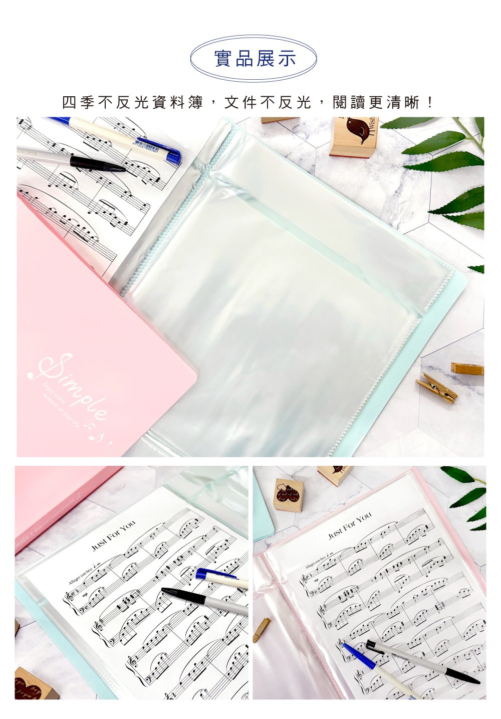 四季紙品禮品 A4不反光資料簿30入 樂譜夾 文件夾 RZ1006
