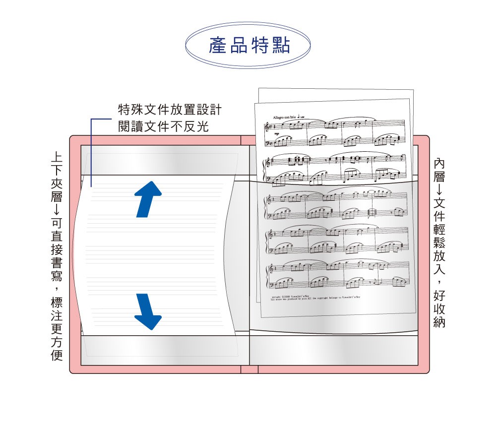 • § 特殊放置設計,閱讀文件不反光。