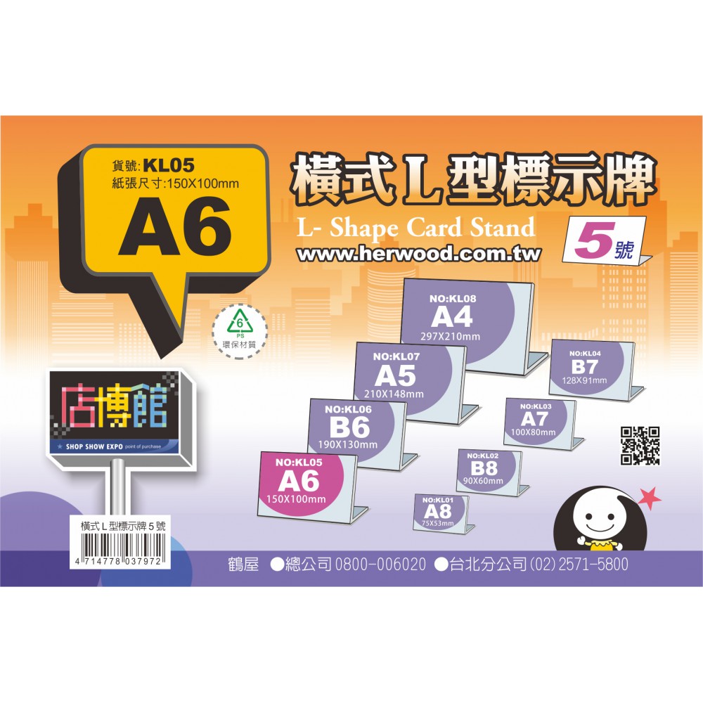 橫式L形標示架5號100*150mm(A6)