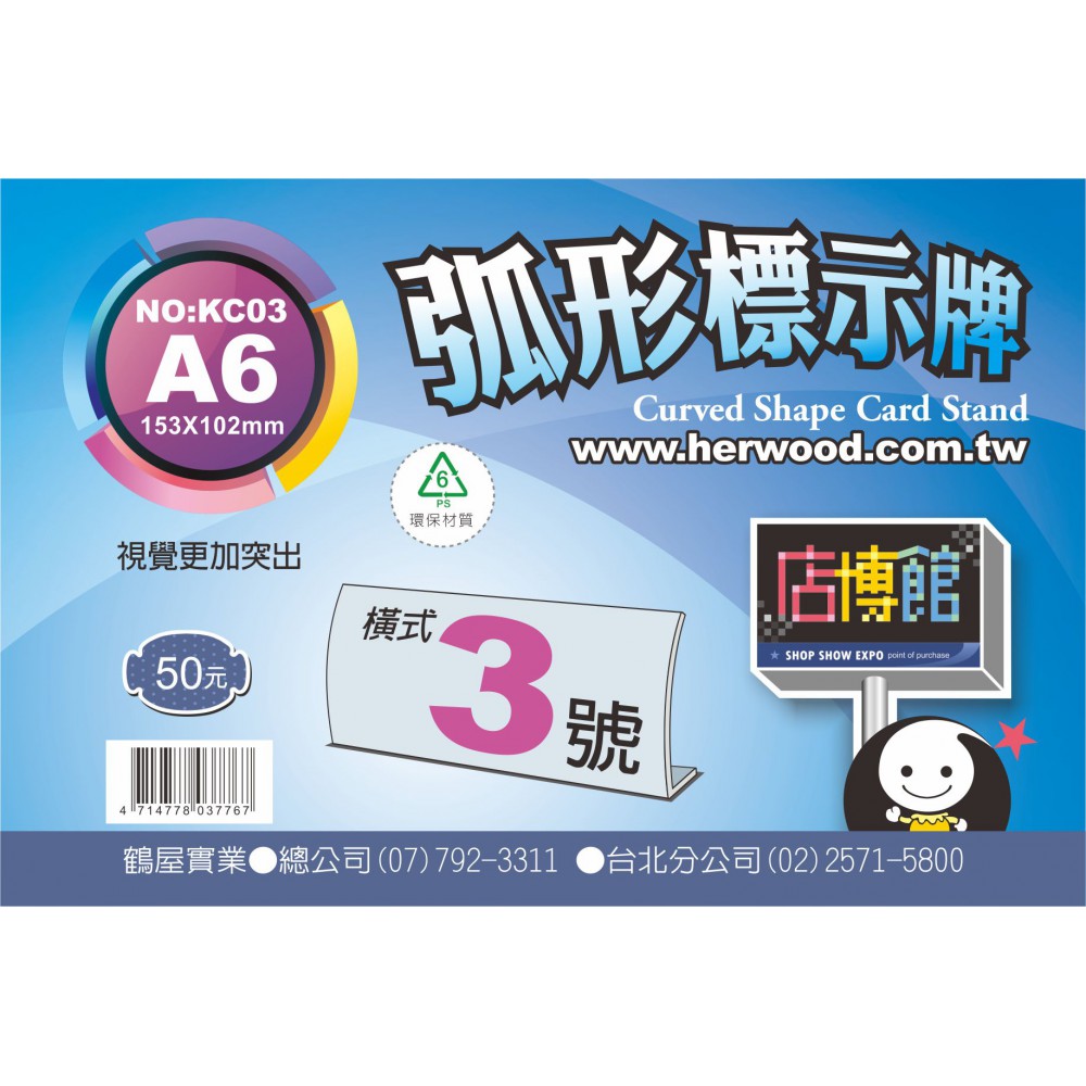鶴屋 橫式弧形標示牌 3 號 153*102mm(A6)