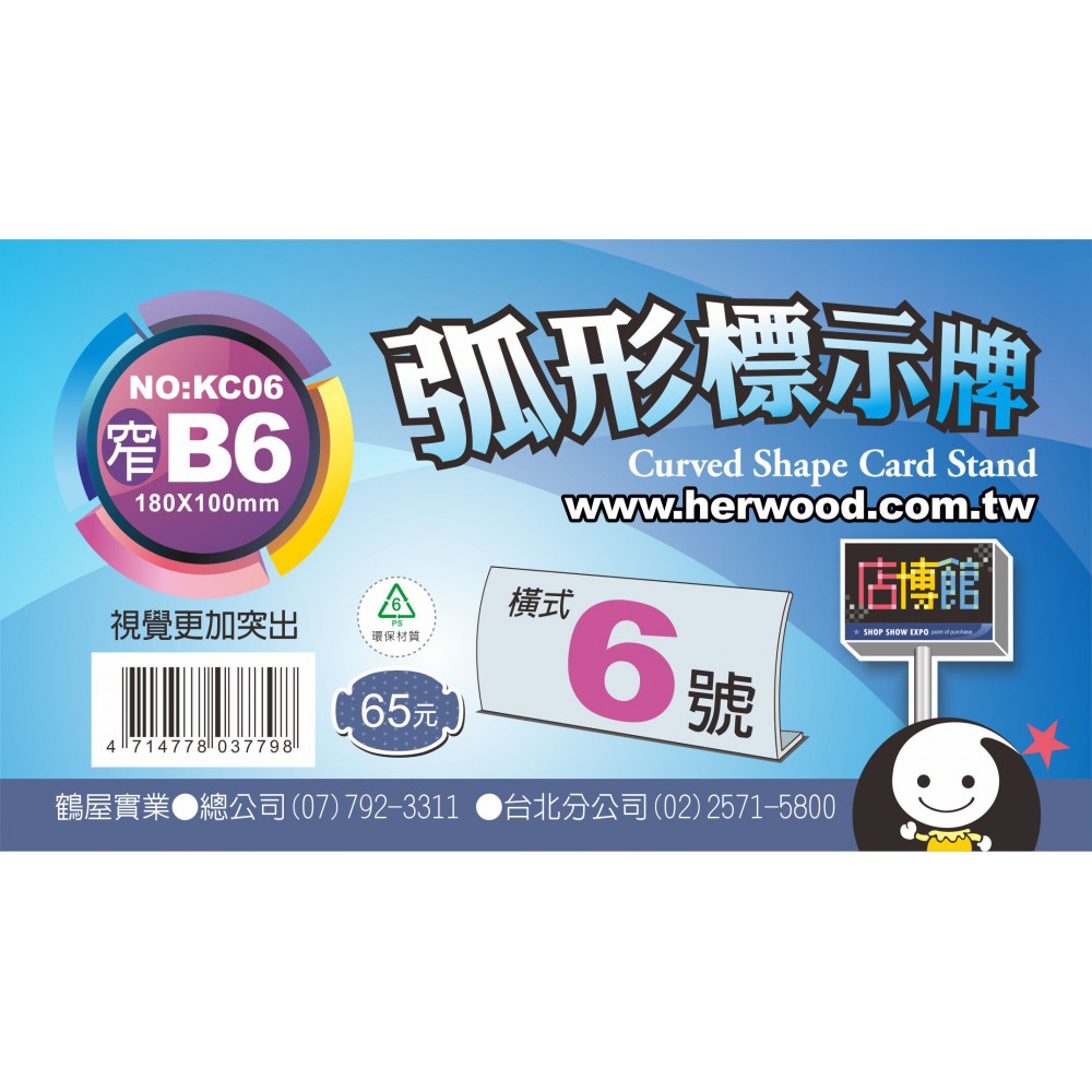 鶴屋 橫式弧形標示牌 6 號 180*100mm(窄 B6)