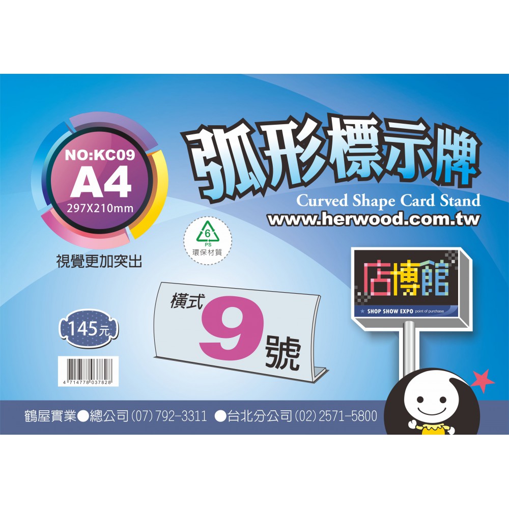 鶴屋 橫式弧形標示牌 9 號 297*210mm(A4)