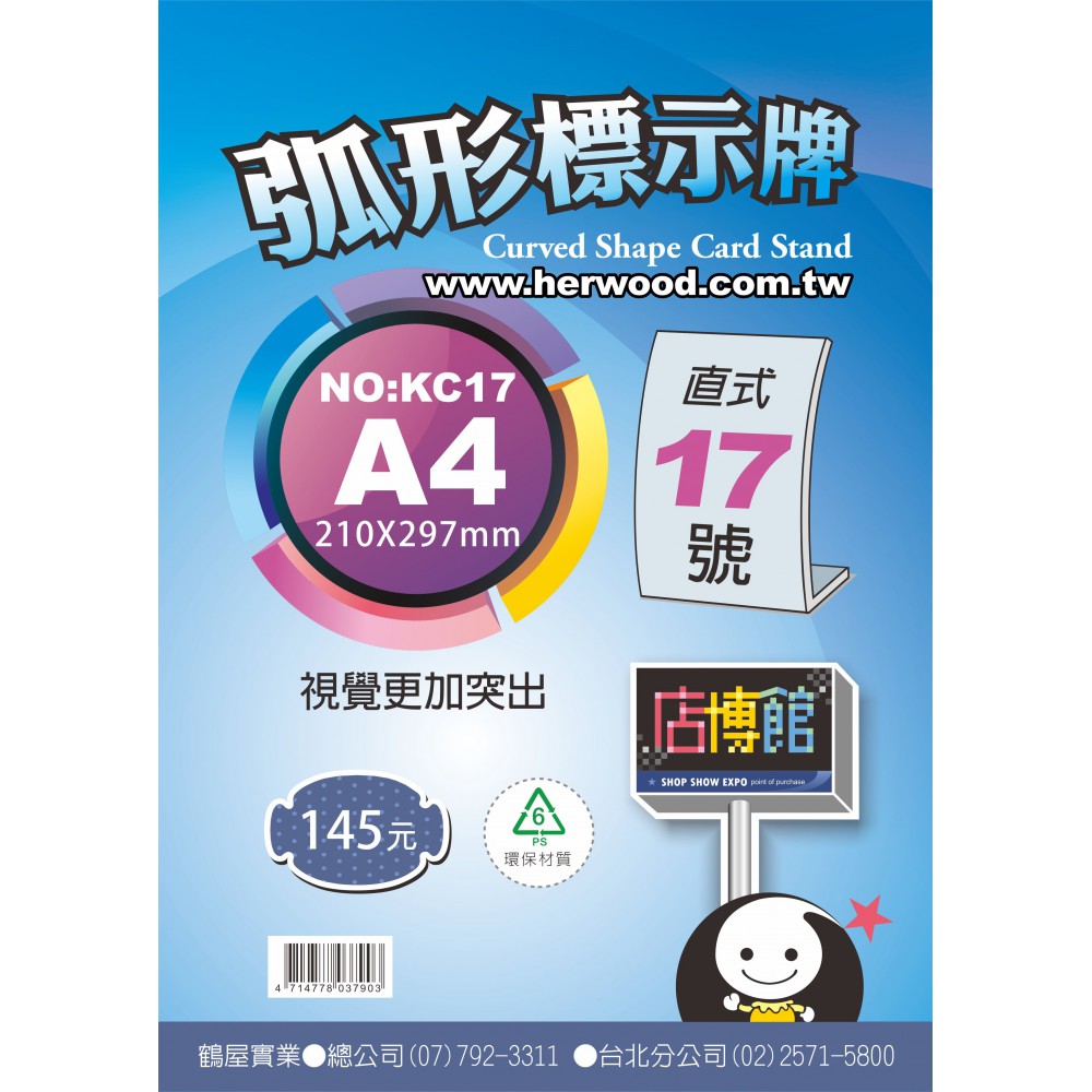 鶴屋 直式弧形標示牌 17 號 210*297mm(A4)