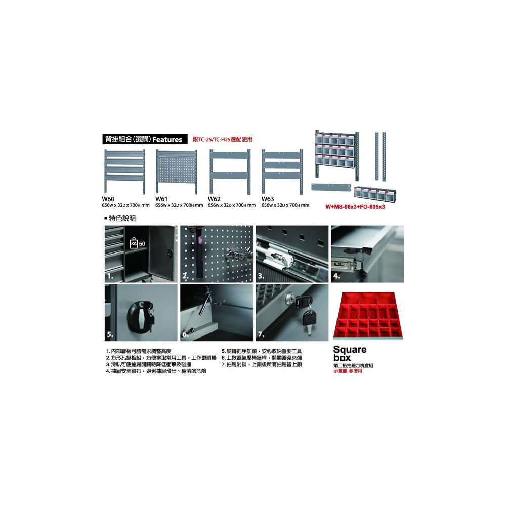6.櫃體平面方孔側板(具防塵功能),可搭配HK掛勾