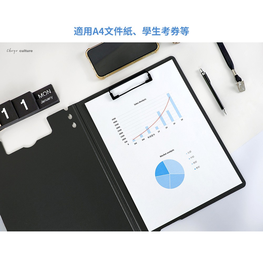 適用A4大小的紙張、考卷等 烤漆鐵夾,可夾約50張紙...
