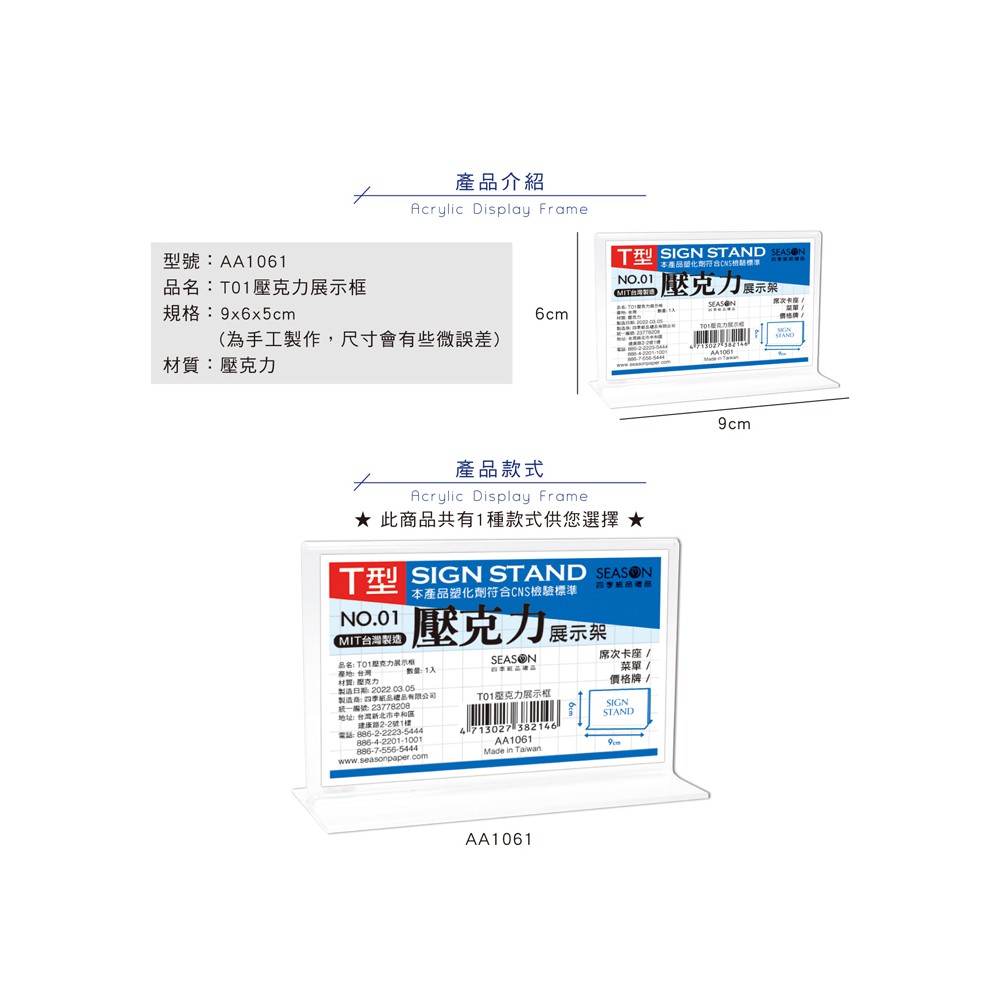 T型壓克力展示架AA1061 | AA1061 | 9 | 6 | 橫式 | |