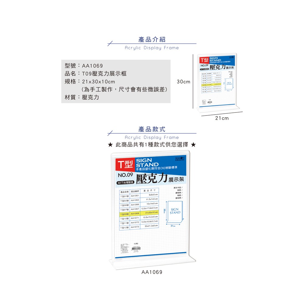 T型壓克力展示架AA1069 AA1069 21 30 A4直式