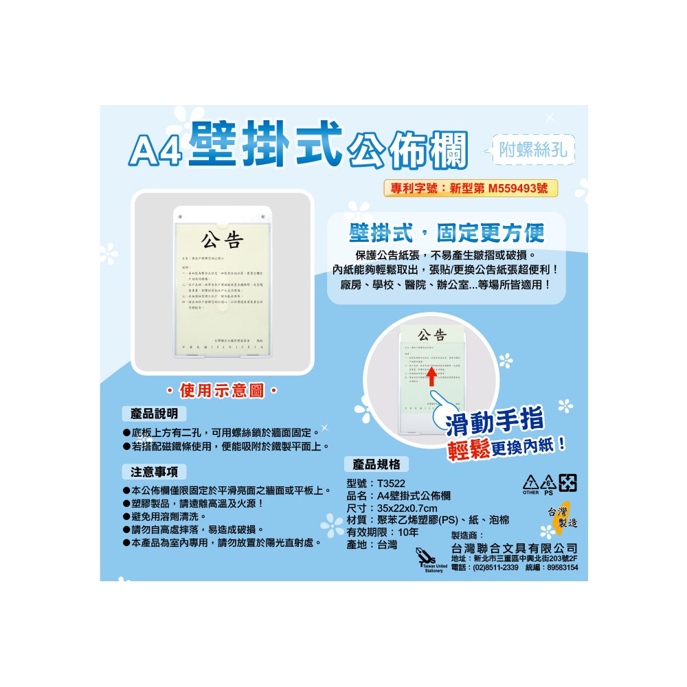 ▶保護公告紙張,不易產生皺摺或破損。