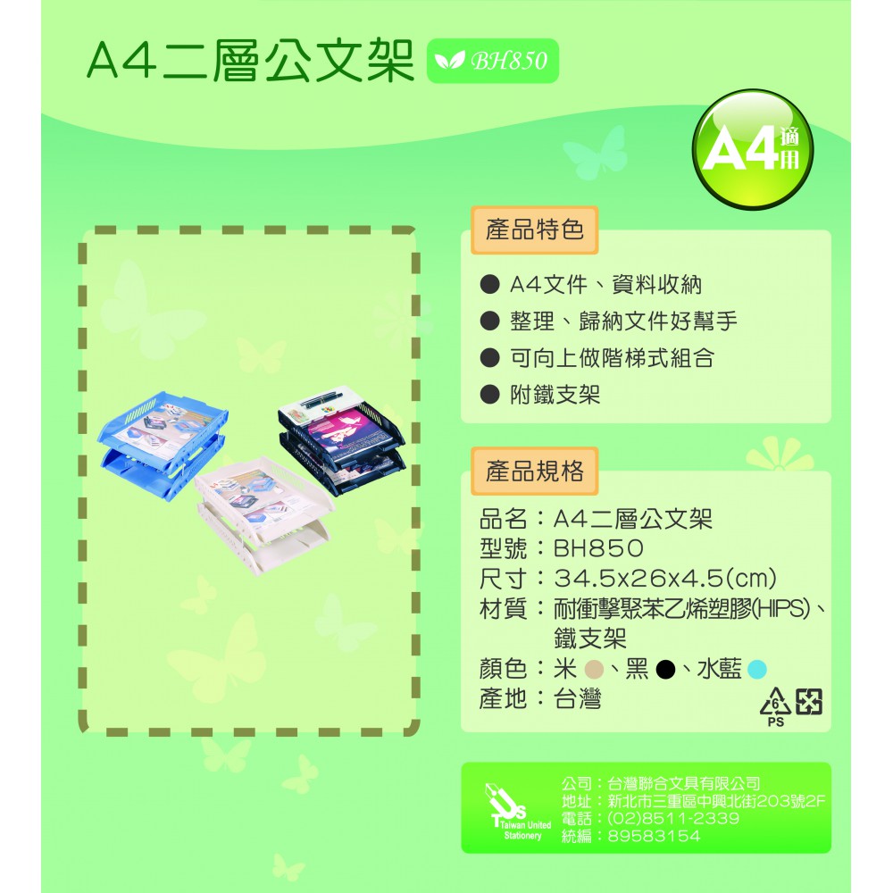 WIP 聯合 A4 二層公文架 BH850