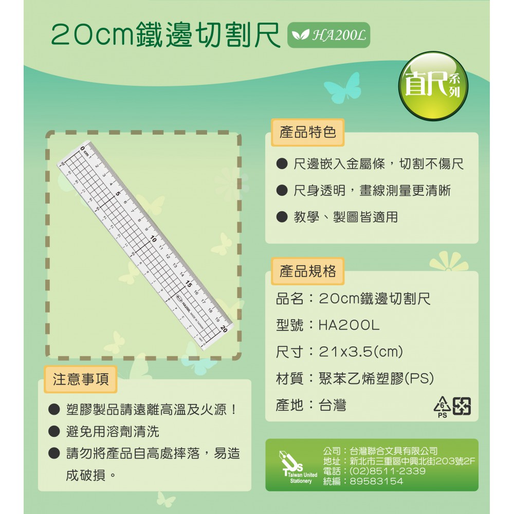 尺寸: 21x3.5cm▶尺邊嵌入金屬條,切割不傷尺...