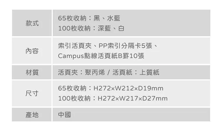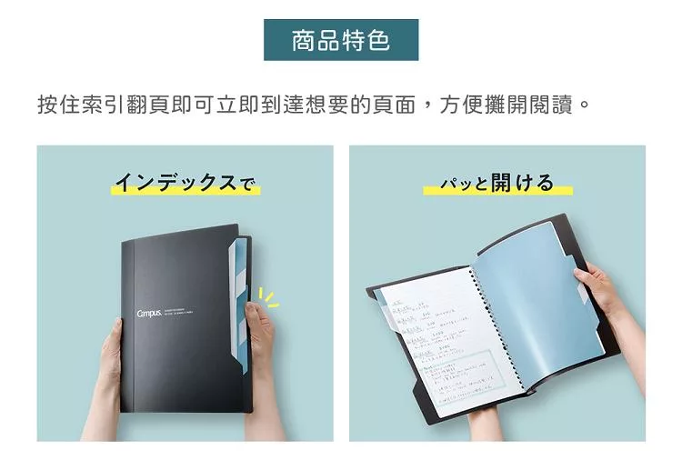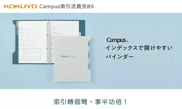 產品名稱:【日本KOKUYO】Campus索引活頁夾B5(26孔) 65枚/100枚收納 熱銷款