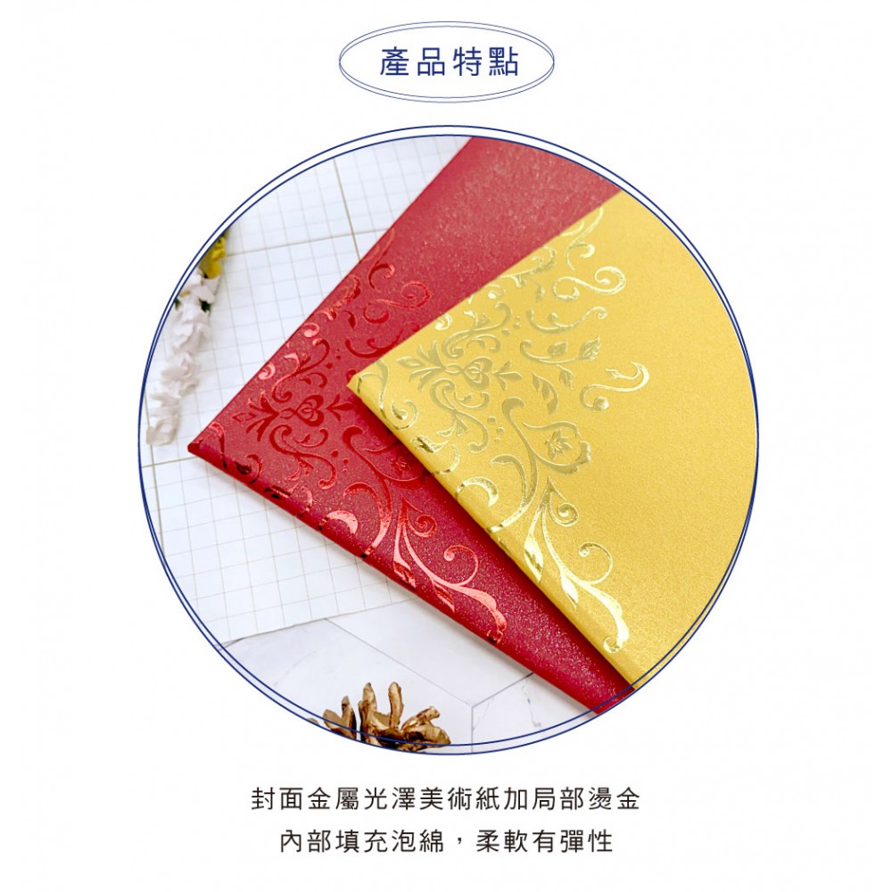 §內部採金屬光澤絲紋美術紙,四邊角以紅緞帶製作